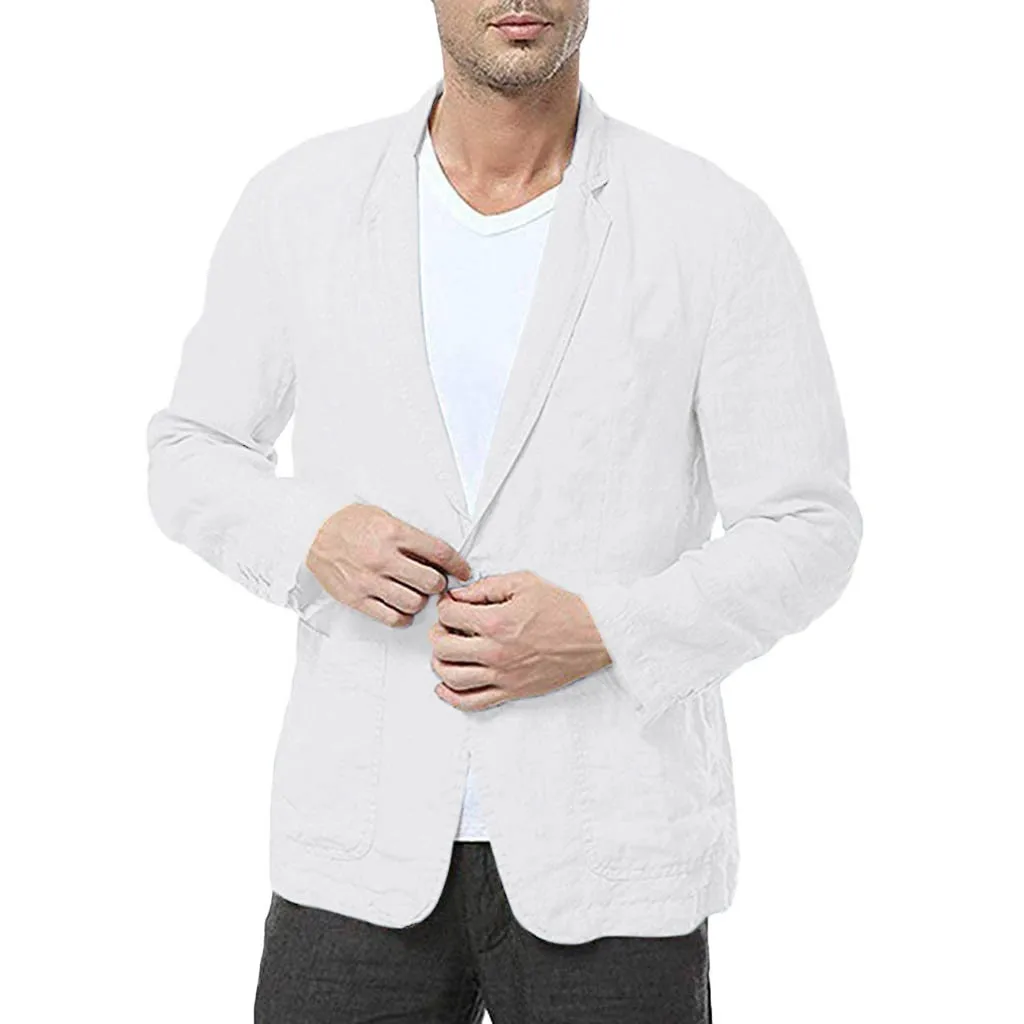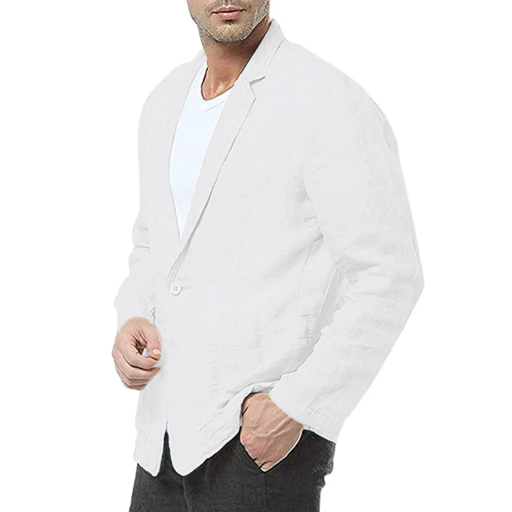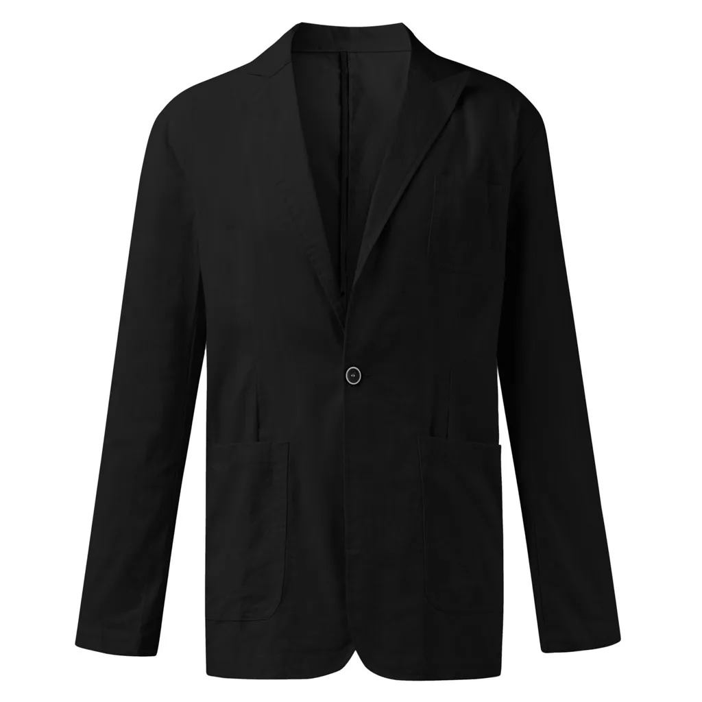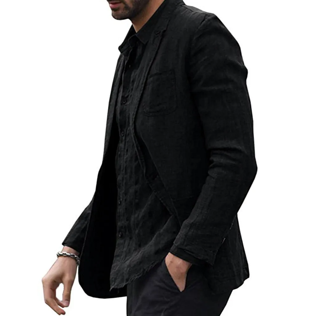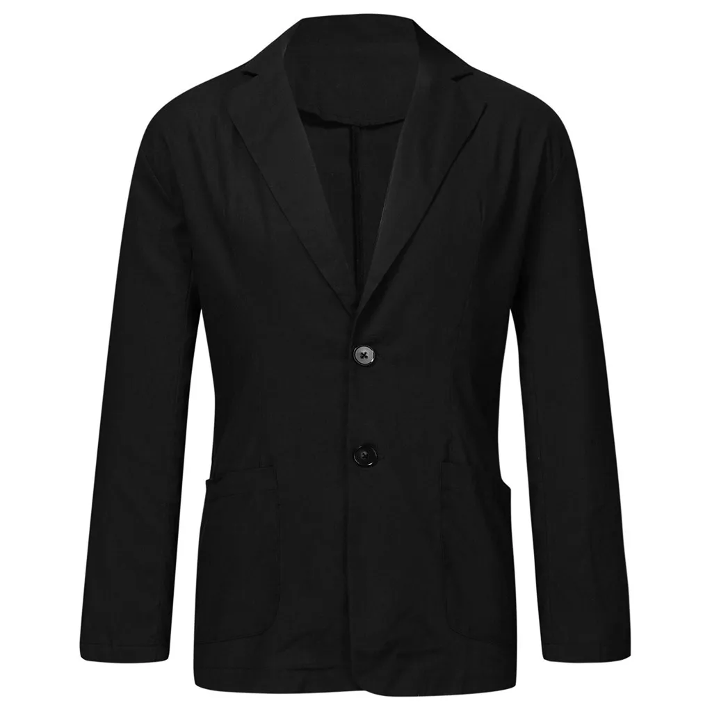 Мужской приталенный Блейзер из смешанного хлопка и льна, блейзер с длинными рукавами, костюмы с карманом, размера плюс Повседневная однотонная куртка, верхняя одежда для мужчин 2019