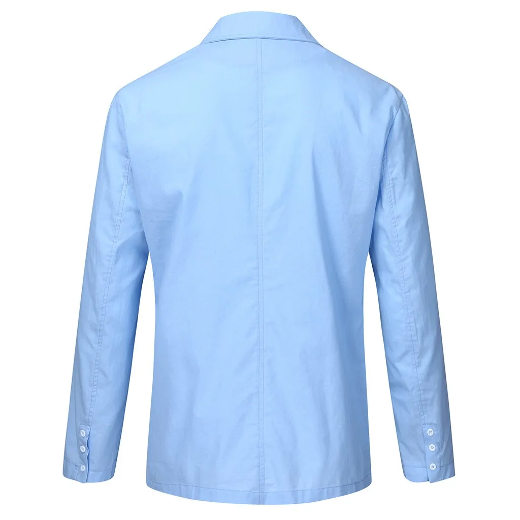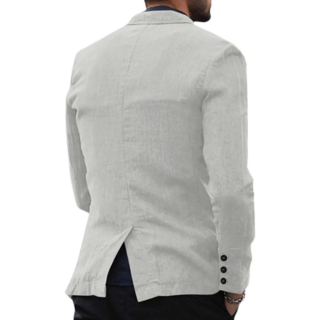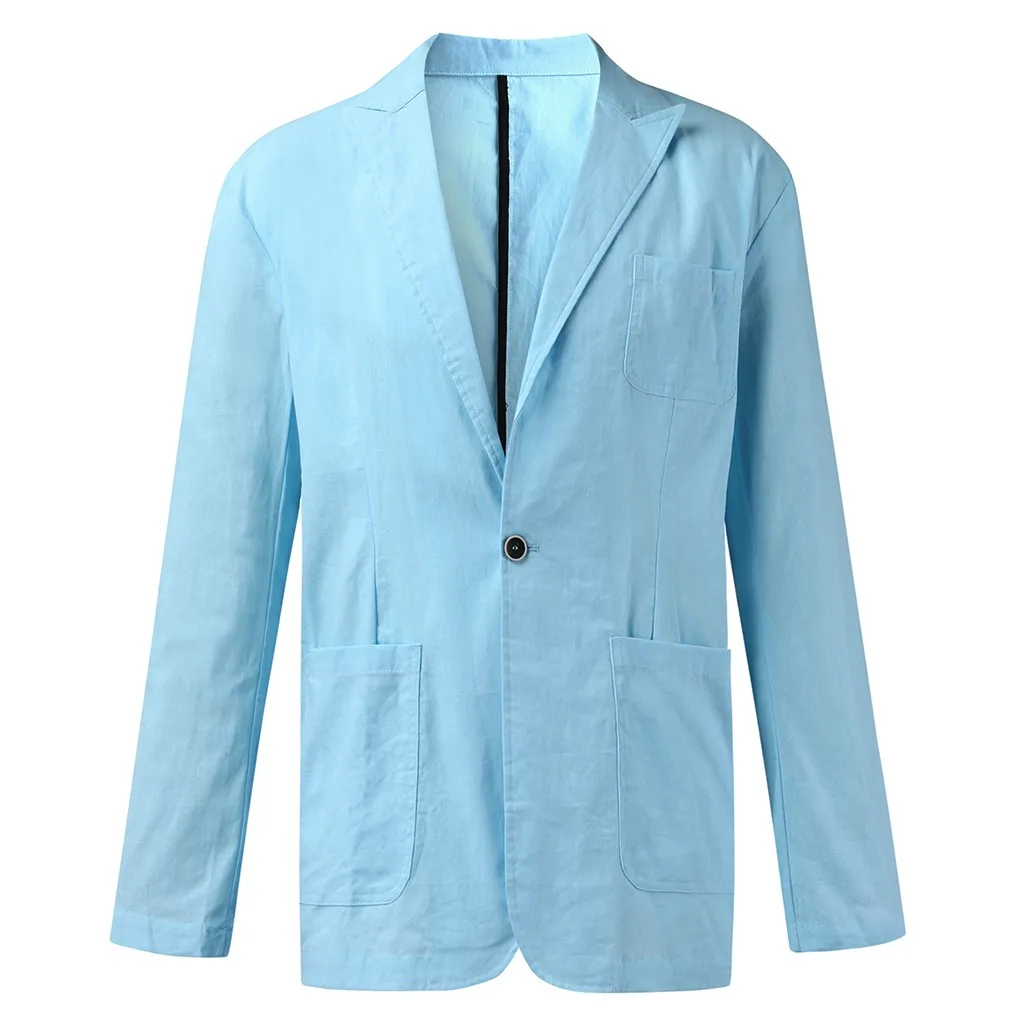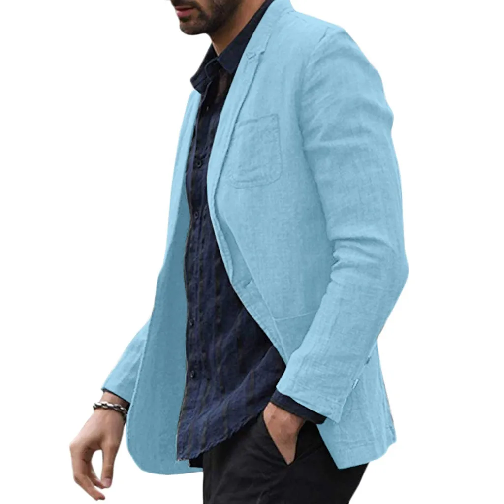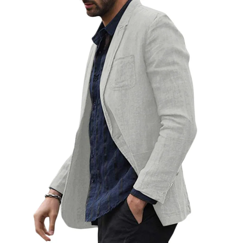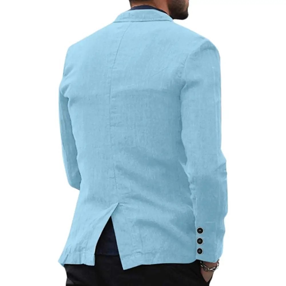 Мужской приталенный Блейзер из смешанного хлопка и льна, блейзер с длинными рукавами, костюмы с карманом, размера плюс Повседневная однотонная куртка, верхняя одежда для мужчин 2019