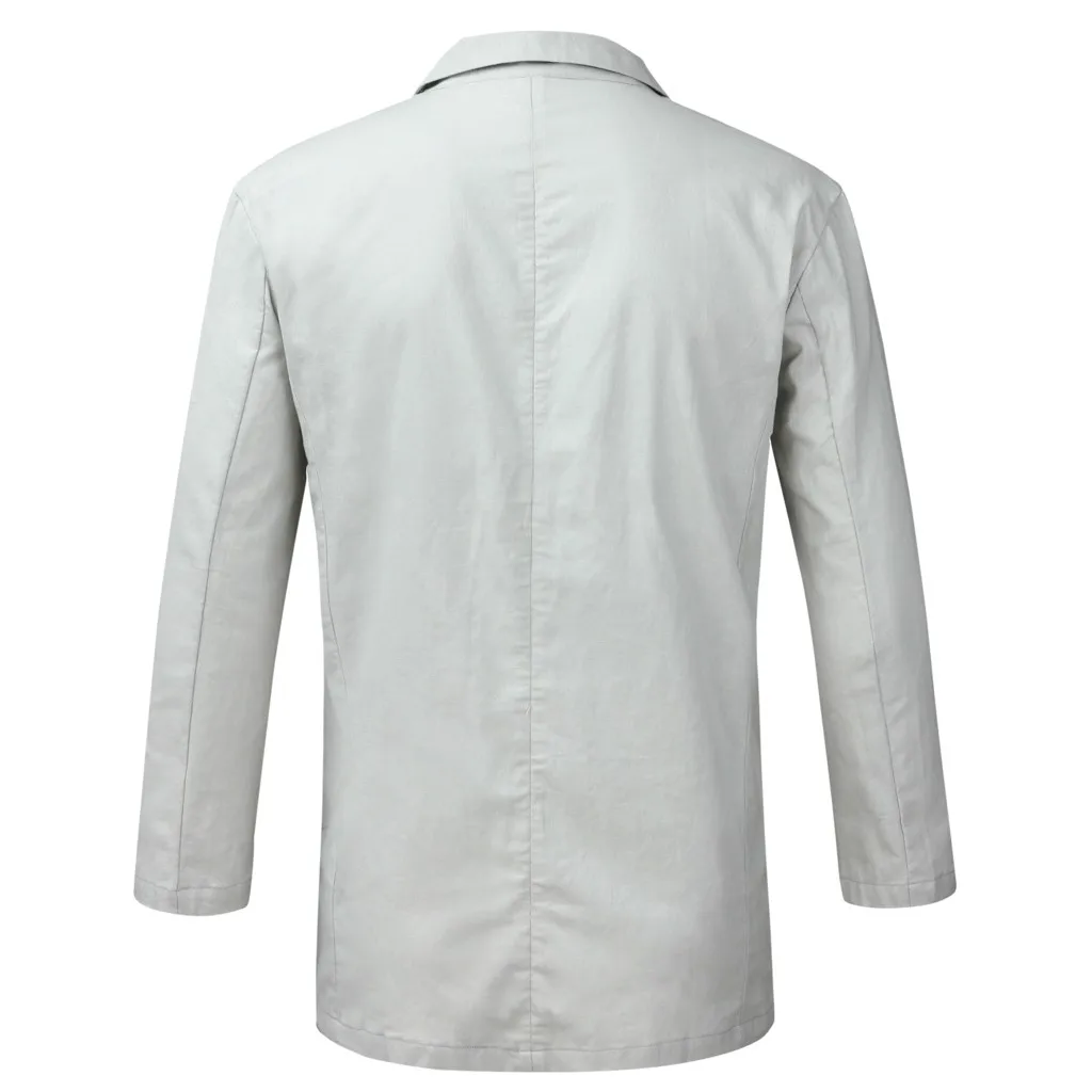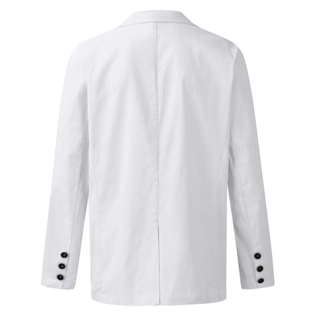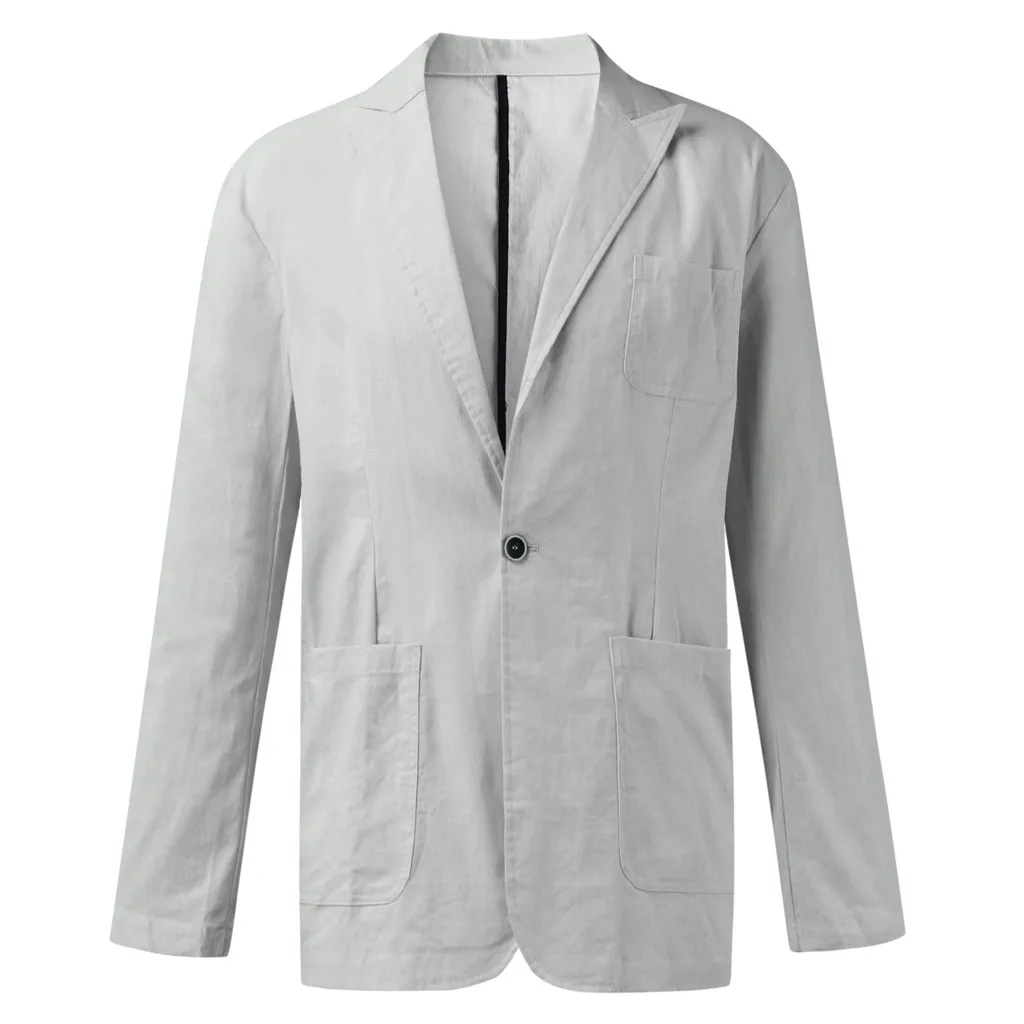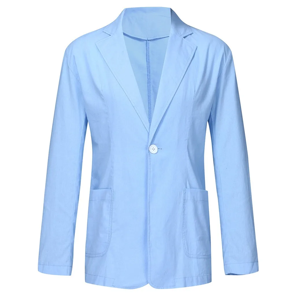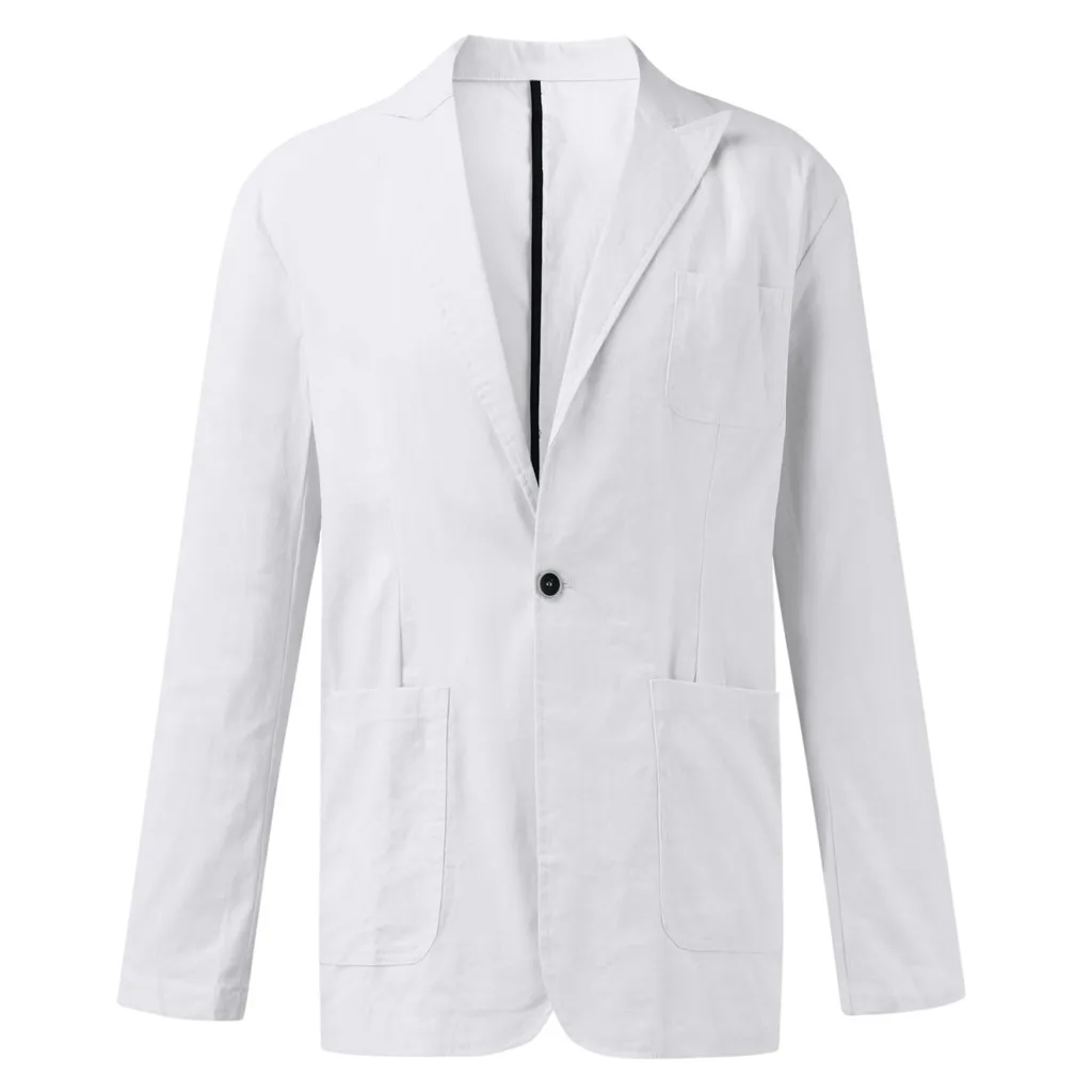 Мужской приталенный Блейзер из смешанного хлопка и льна, блейзер с длинными рукавами, костюмы с карманом, размера плюс Повседневная однотонная куртка, верхняя одежда для мужчин 2019