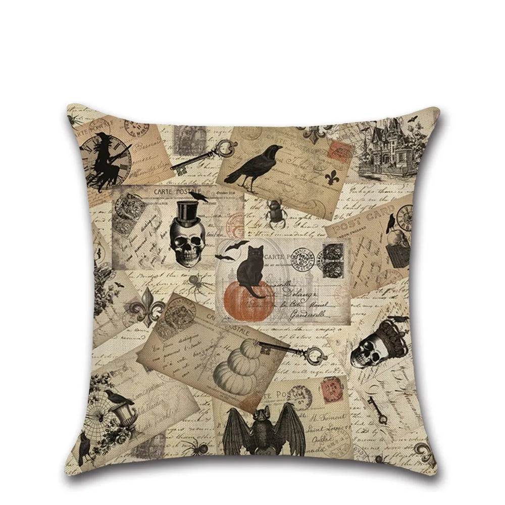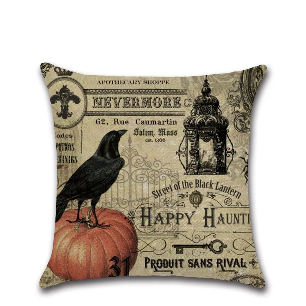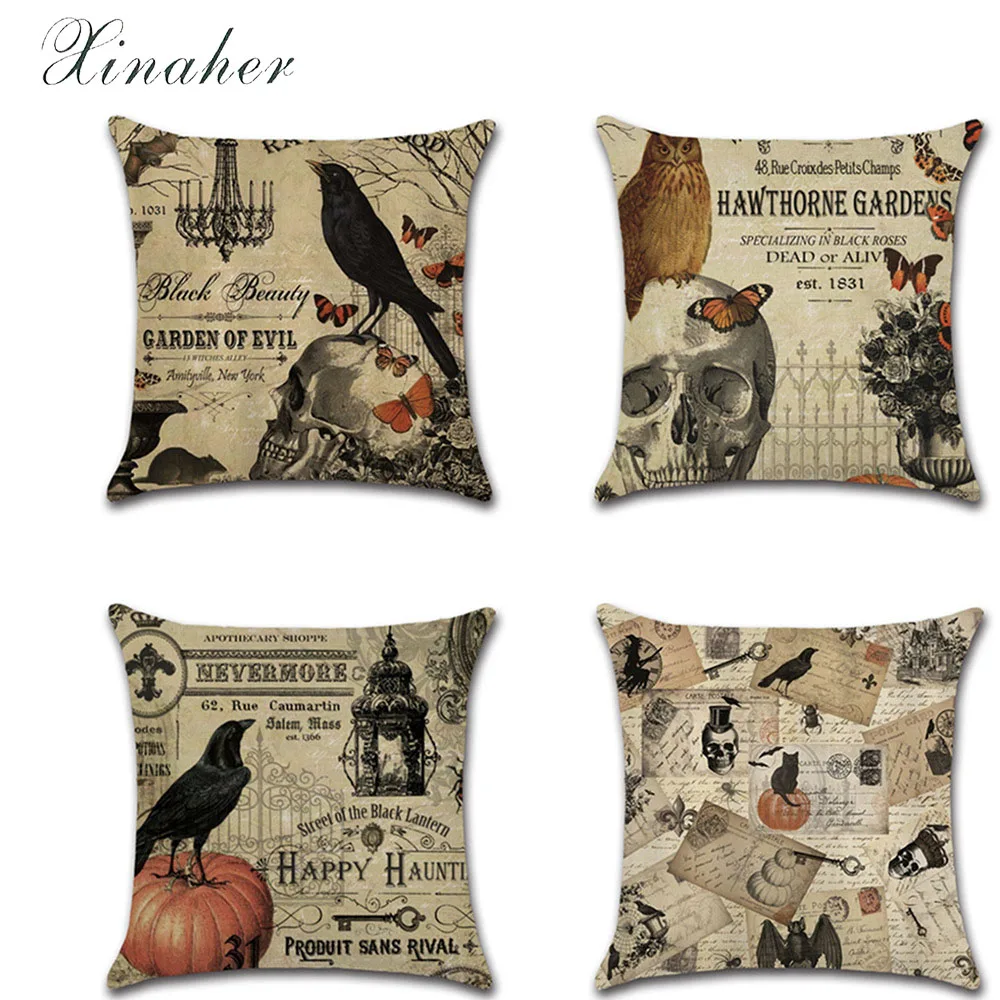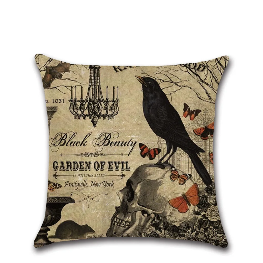 Винтажная декоративная подушка на Хэллоуин, череп ворона лен, украшение для дома, чехол для декоративной подушки Чехол