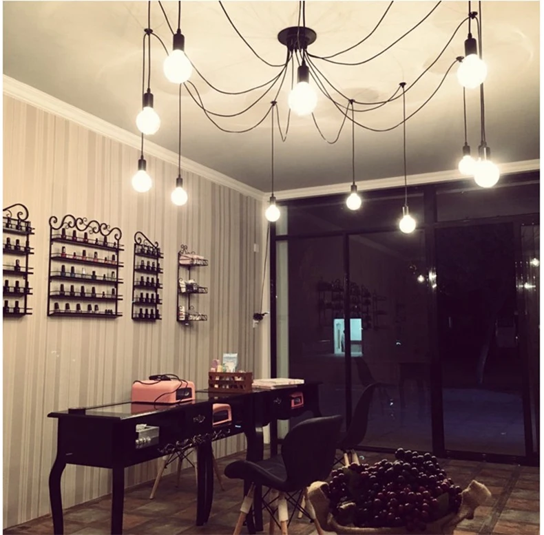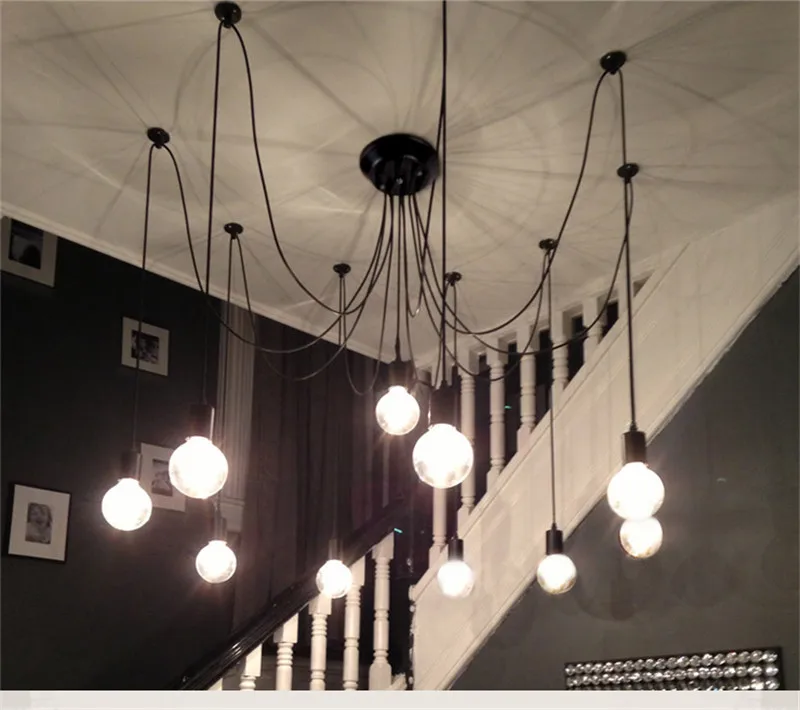 BDBQBL Ретро арт паук Лофт современный белыйчерный блеск люстры Регулируемый Эдисон лампа E27 потолочный светильник винтажный