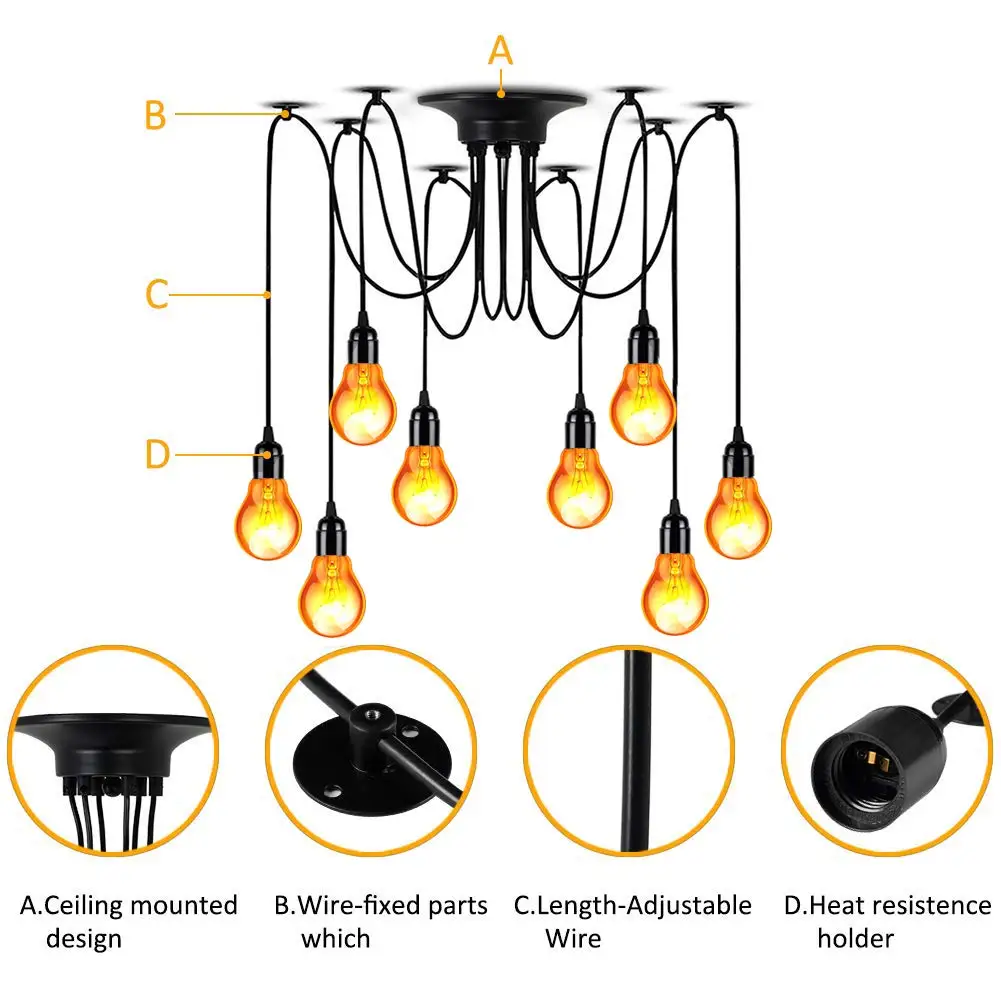 Item TypeArt Spider Pendant Lamp,Ceiling Lamp Fixture,Edison Bulb Chandelier