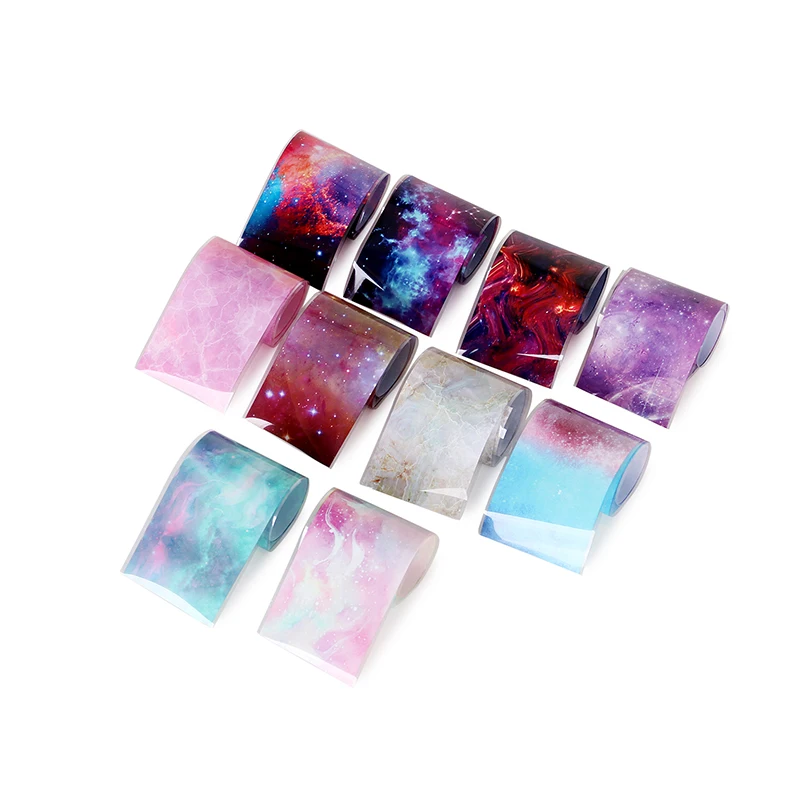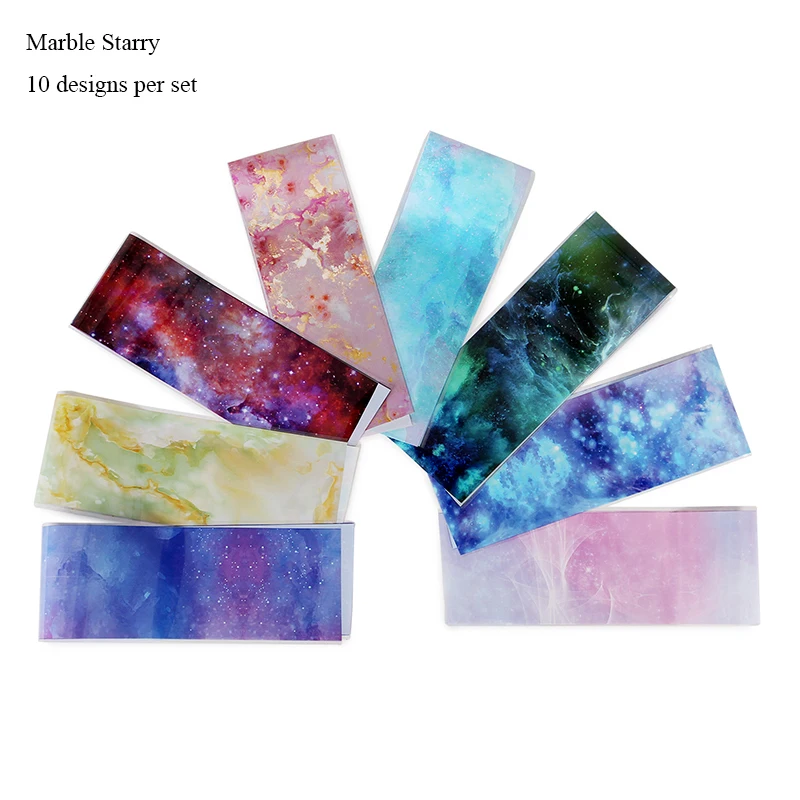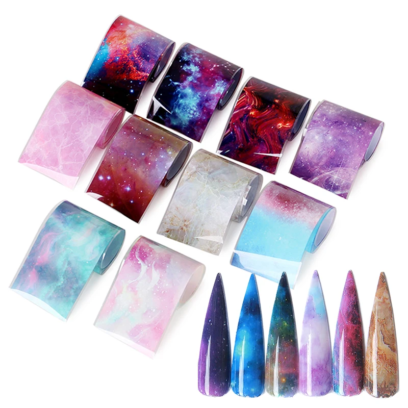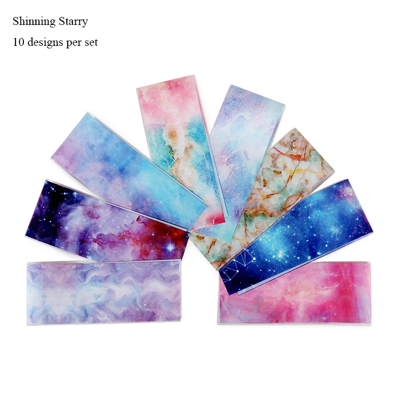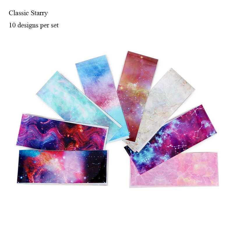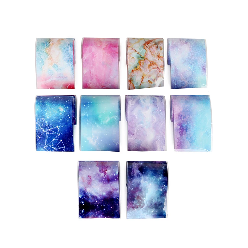 10 шт., Набор наклеек из фольги для ногтей, голографические Стикеры, Звездный клей, обертывания, переводная бумага, мраморные блестящие наклейки для дизайна ногтей, слайдер для геля