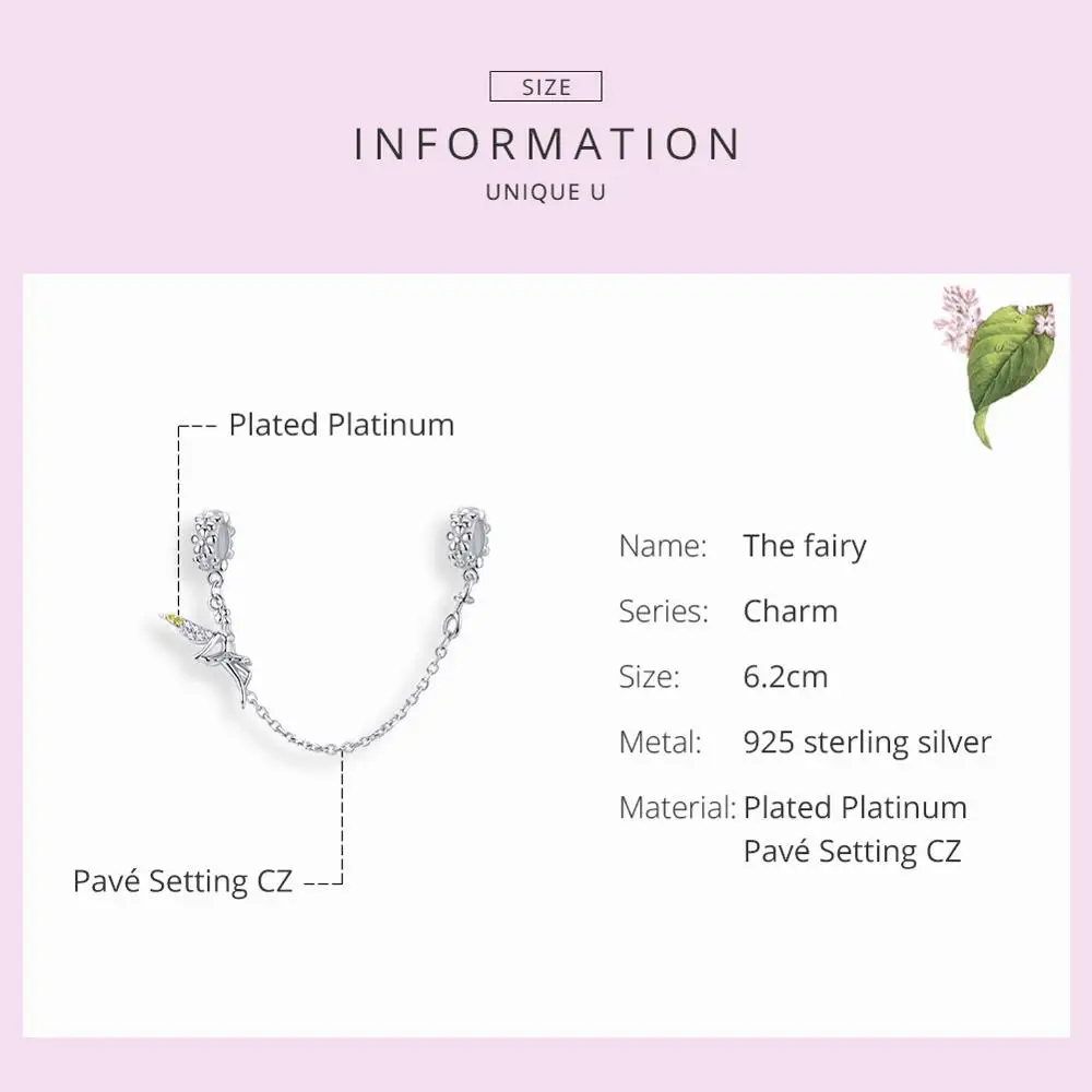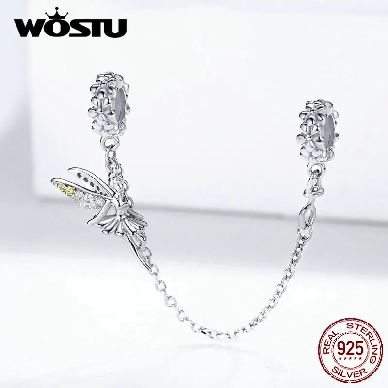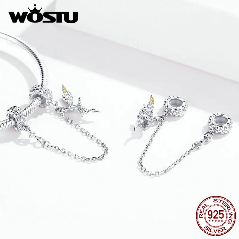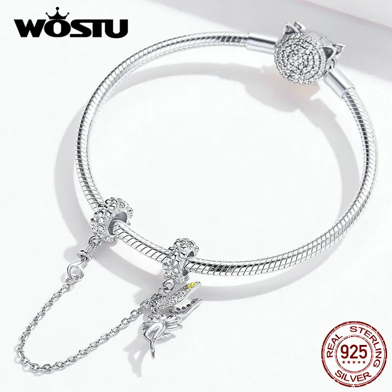 WOSTU, Стерлинговое Серебро 925 пробы, безопасная цепочка, эльф, фея, ангел, амулеты, подходит для оригинального браслета и браслета для женщин, свадебные украшения, CQC1278