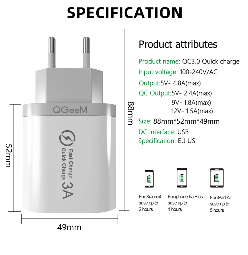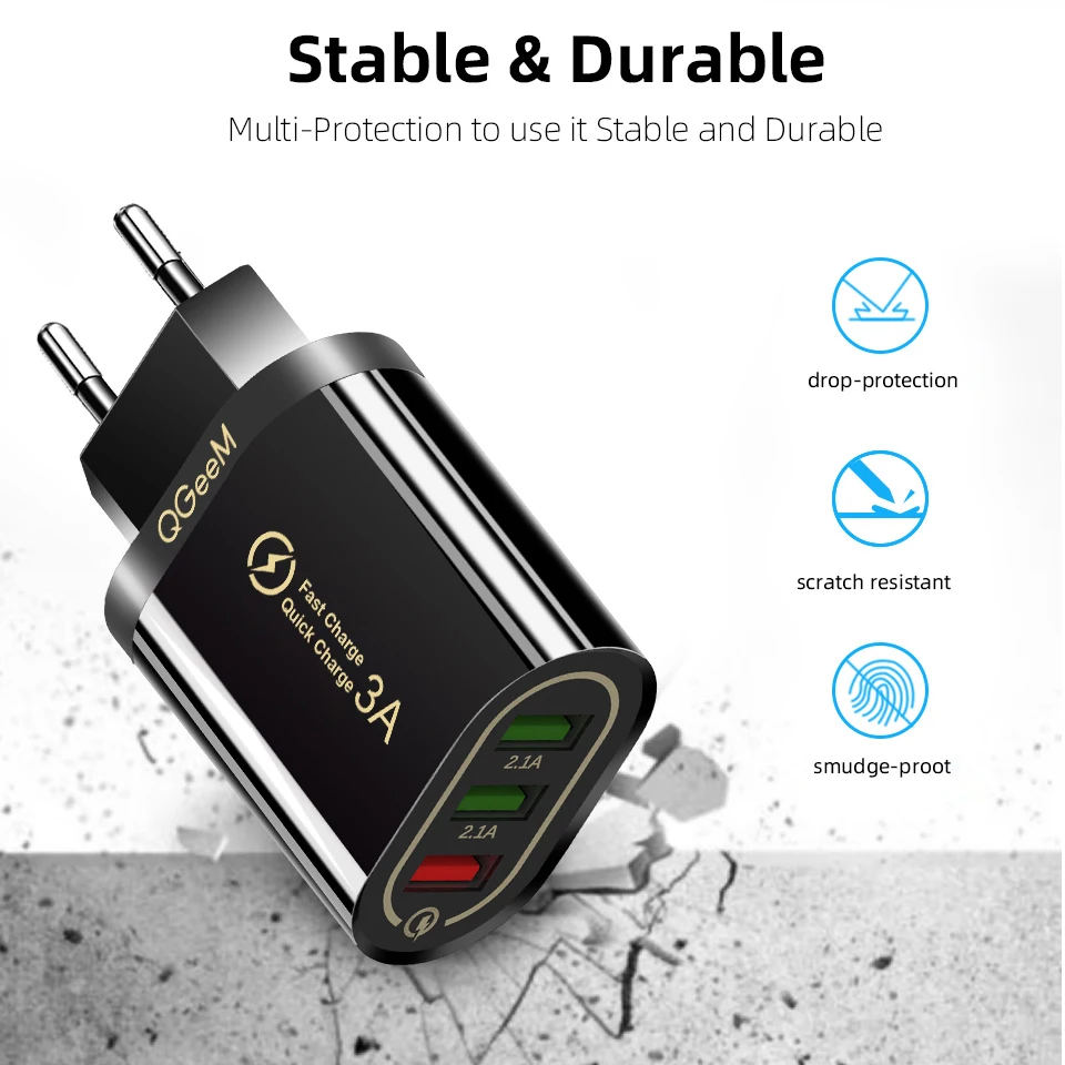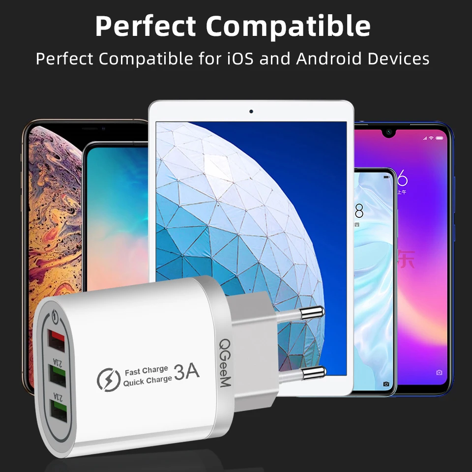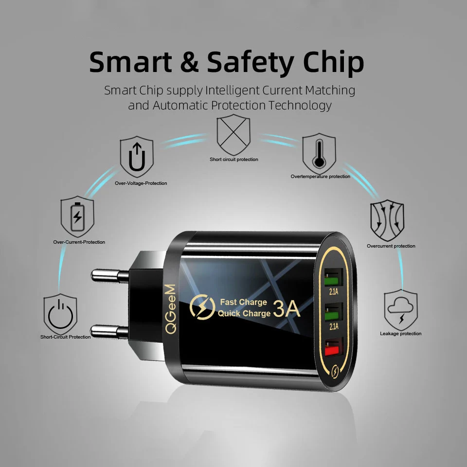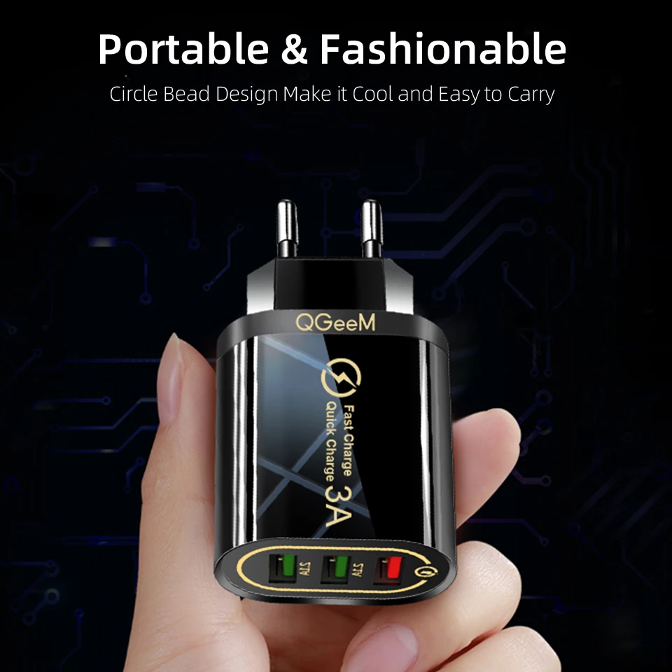 Зарядное устройство QGEEM 3 USB для iPhone, быстрая зарядка 3,0, для Xiaomi QC 3,0, портативное зарядное устройство для телефона
