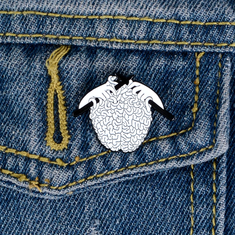 Вязаная эмалевая брошь в форме мозга, брошь на отворот человеческих...