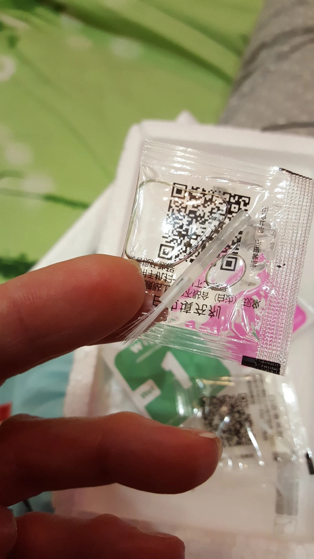Все как и хотела знакомая.Дошел целым и невредимым за месяц.В комплекте были салфеточки и жидкость,похожая на масло.По штрих коду можно посмотреть видео,как ее использовать.Спасибо продавцу,товаром довольны.Фото нет,сорян. :D