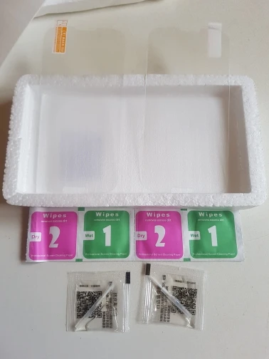 очень понравилось, что приложены микропакетики с жидкостью и кисточки. стекло по краям немного не прилегает, а при использовании жидкости прилегает идеально