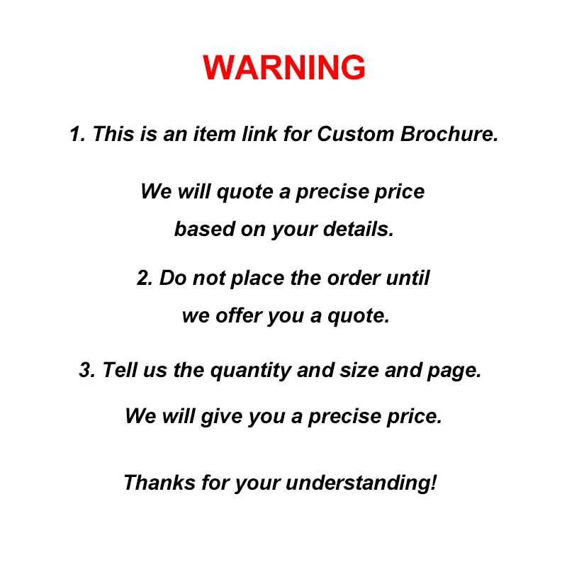 Не размещайте заказ, пока мы не предложим вам предложение. Сообщите нам количество, размер, бумагу и страницу. Мы дадим вам точную цену.Спасибо за понимание.