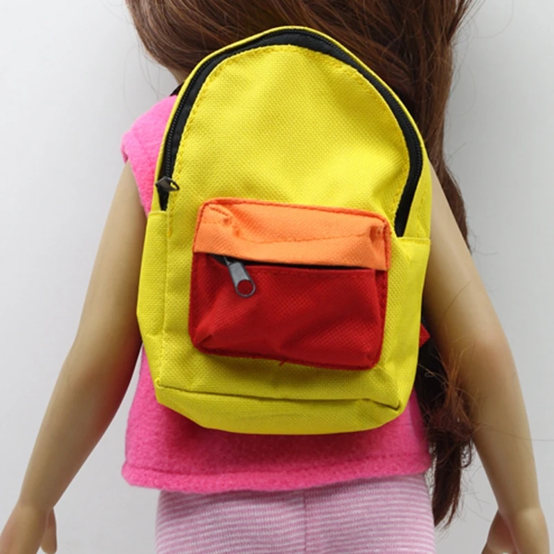 100% Новинка и высокое качество Размер этого рюкзака в самый раз подходит для американских девушек. Конечно, пока ваша кукла достаточно большая, другие куклы также приемлемы. 18 дюймов относится к размеру куклы. Цвет: зеленый, желтый, красный, розовый, синий Материал: ткань Способ продажи: розничная и оптовая продажа Размер: один размер Длина: 13,5 см Ширина: 9,5 см Высота: 4 см (1,57 дюйма) Количество: 1 шт.