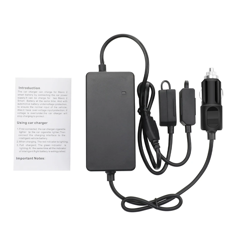 -Подходит для аккумулятора DJI Mavic 2 Pro Zoom,-Автомобильное быстрое зарядное устройство может заряжать две батареи одновременно,-Для зарядки-1 шт. аккумулятор-4,5 v, она занимает около 45 минут, чтобы полностью зарядить,-Зарядка 2 батарей 3 А, для полной зарядки требуется около 90 минут,-Интеллектуальная защита зарядного устройства, перенапряжение, Перегрузка по току, перезарядка, перегрев, перезагрузка, защита от короткого замыкания