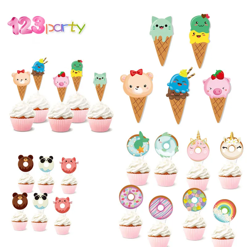 Набор флагов для мороженого, пончиков, торта, украшения для дня рождения, детские украшения для торта, топперы, товары для вечеринки, детский праздник, мороженое, пончики, шары