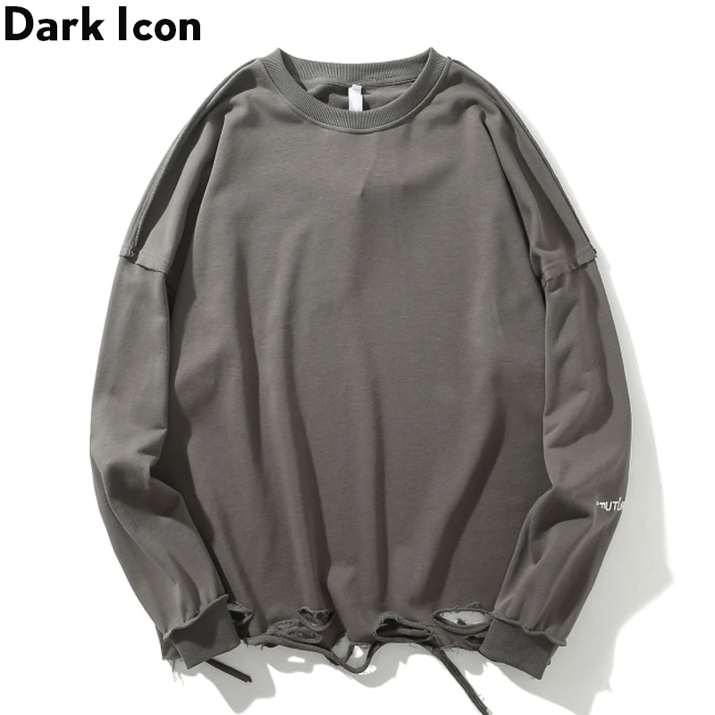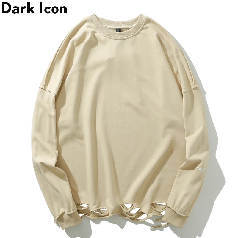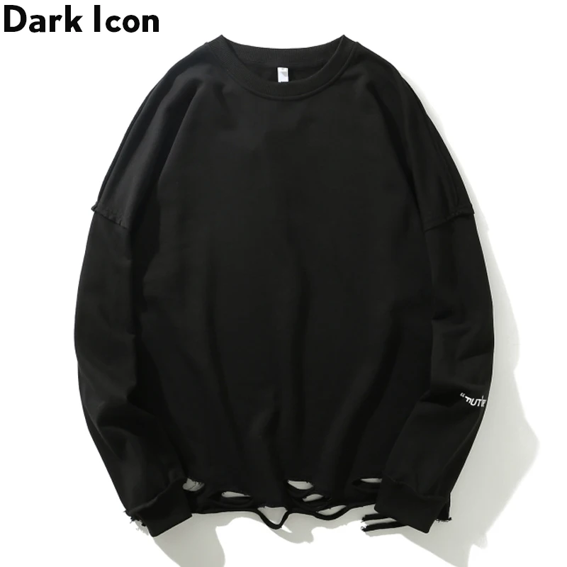 Мужской рваный свитер Dark Icon, Свитер оверсайз с круглым вырезом,...