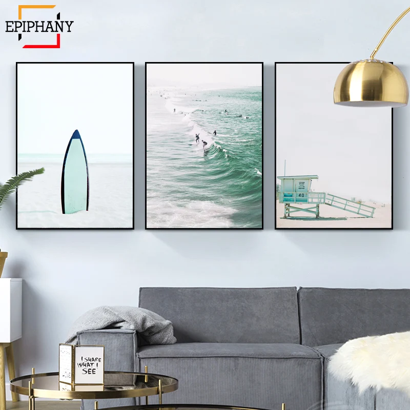 Картина для серфинга с изображением пляжа, летняя Настенная картина...