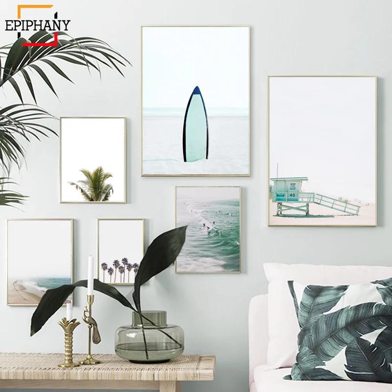 Пляжная настенная художественная галерея с морским принтом для серфинга пальмовое дерево современный минималистичный принт тропический береговой декор настенные картинки для гостиной