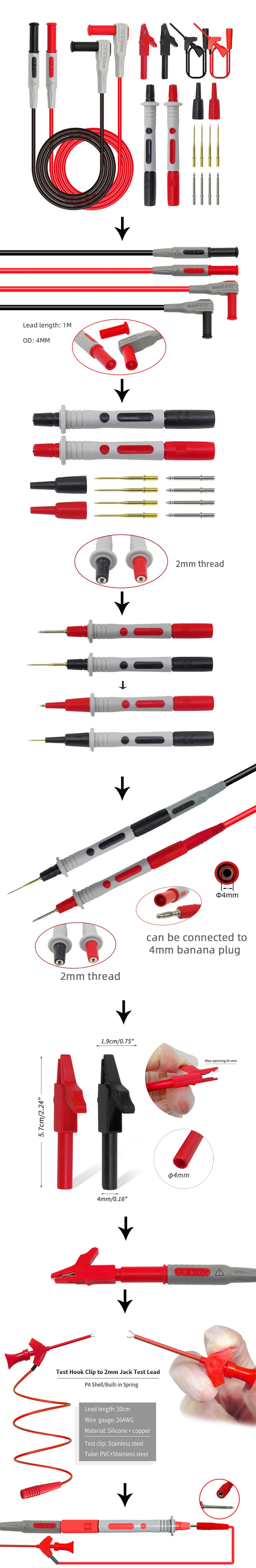 Тестовый Кабель Cleqee P1300C 4 в 1 с банановым штекером, сменный щуп для мультиметра, комплекты испытательных проводов и зажимов типа крокодил