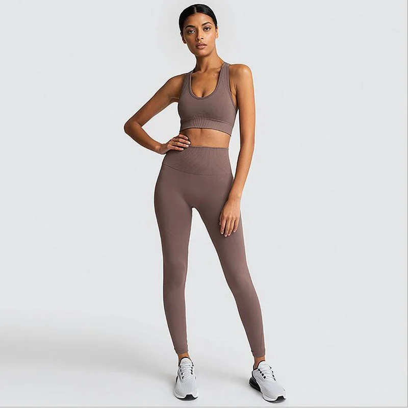 Комплект Спортивный Женский, бесшовный, леггинсы, спортивные, бюстгальтеры тренировочные