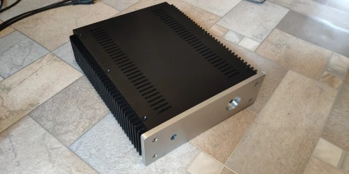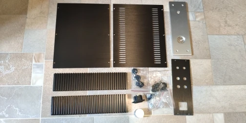 отличный корпус для УНЧ, хоть и приходится переплачивать двойную цену за доставку. Шла посылка месяц. Все упаковано лучшим образом, каждая деталь отдельно завернута в подобие поролона (я не знаю как называется этот материал) и ещё весь картонный коробок изнутри усилен пенопластом. Но продавец забыл RCA разъемы (благо у меня они есть), ладно, простим. Все отверстия под шурупы идеально сходятся, обработка металла на высоте.