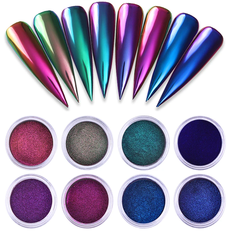 1 коробка зеркальная пудра для ногтей художественный блеск Хамелеон пигмент порошок ногтей Типсы украшения Аксессуары Гель-лак пыль
