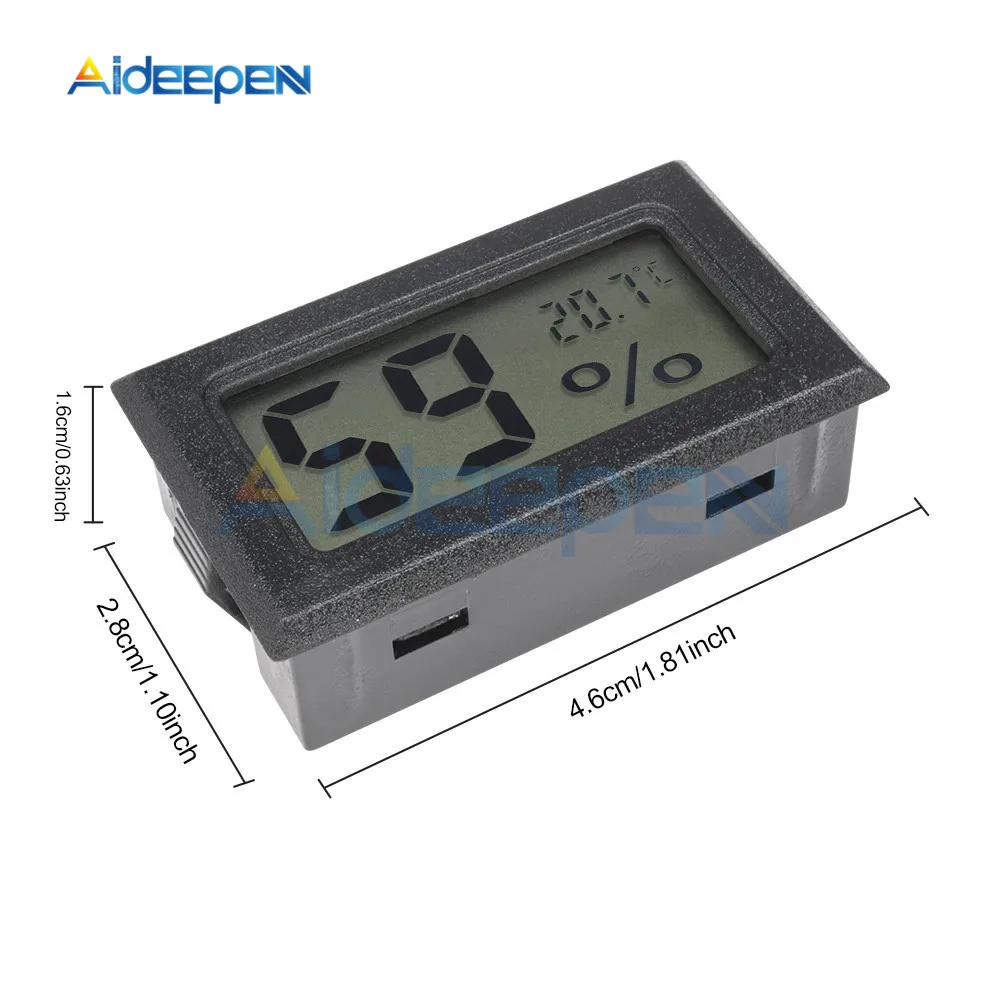 Операционной Напряжение: 1,5 V или LR44Батареи (не входят в комплект))Период выборки: 10SРазмер: прибл. 48x28,5x15,2 ммРазмер ЖК-дисплея: прибл. 40x22,5 ммРазмеры установки: прибл. 46x27x13,5 ммЦвет: черный/белыйЭтот гигрометр имеет зонд, который может точно проверить влажность в некоторых местах. Он широко используется