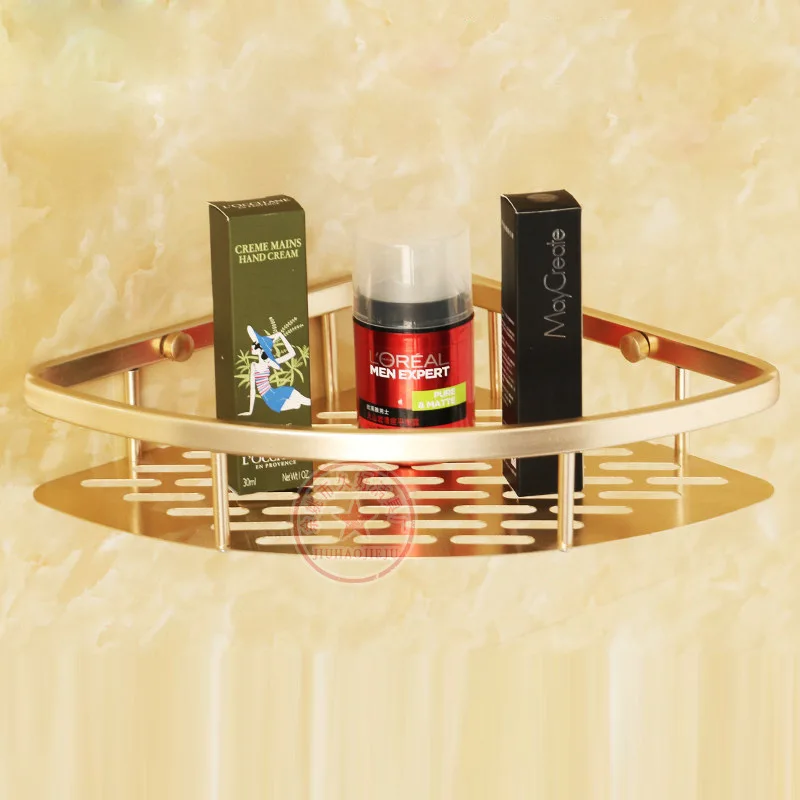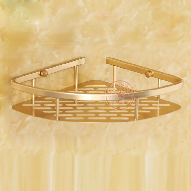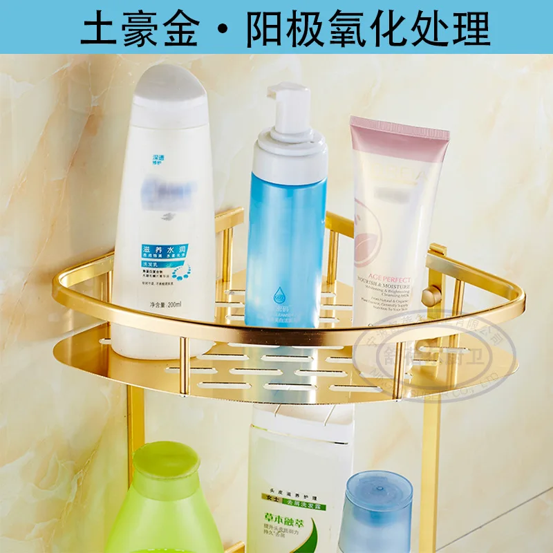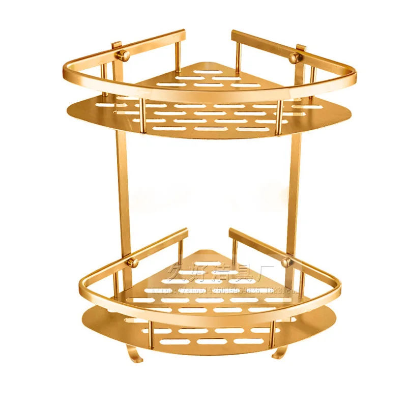Золотистые алюминиевые угловые полки для ванной комнаты, душевые корзины, двухуровневый настенный стеллаж для хранения, аксессуары для ванной комнаты