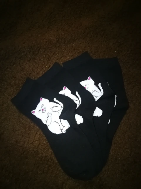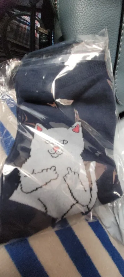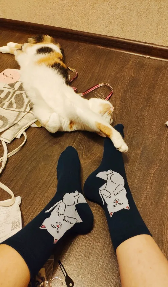 Думал что носки будут чёрного цвета,но они оказались синие. Возможно я был не внимателен когда читал описание и смотрел фото. Приятные мягкие носки, картинки вышита отлично!