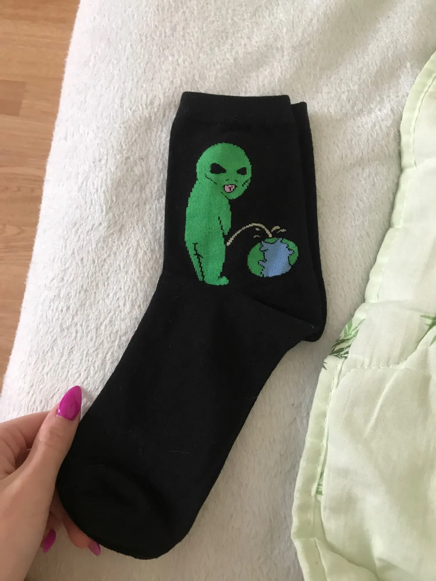 Носки унисекс, хлопковые, с рисунком кота, забавные, с инопланетянином, планетой, удобные, осенне-зимние, креативные, теплые, для Хэллоуина