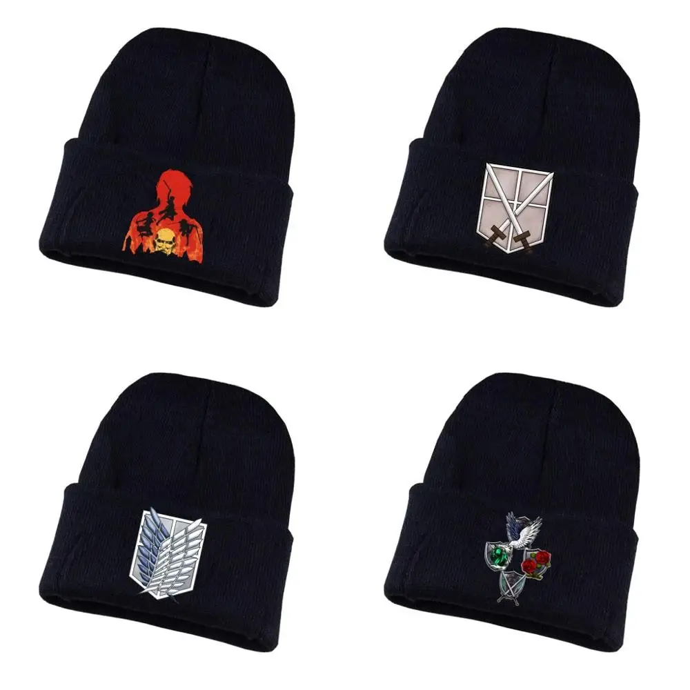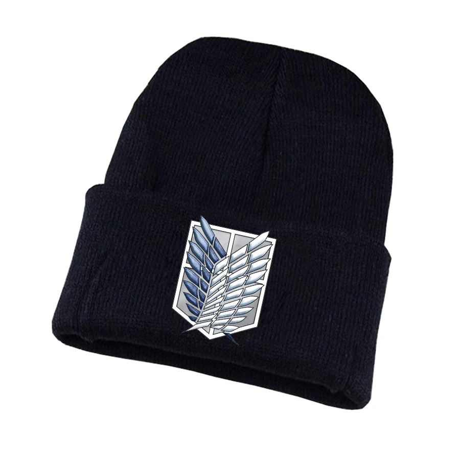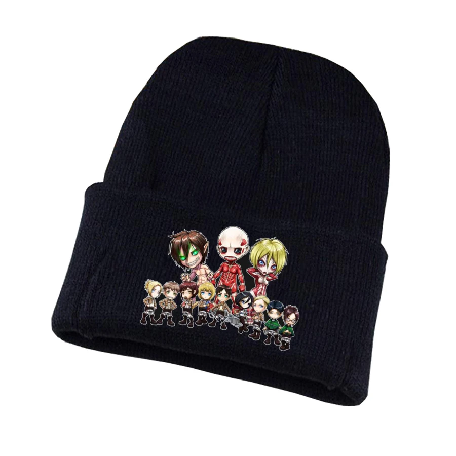 Зимняя теплая шапка аниме атака на титанов, вязаная шапка, шапка унисекс, хлопковая шапка с принтом, зимняя вязаная шапка для подростков, шапки-бини, шапка