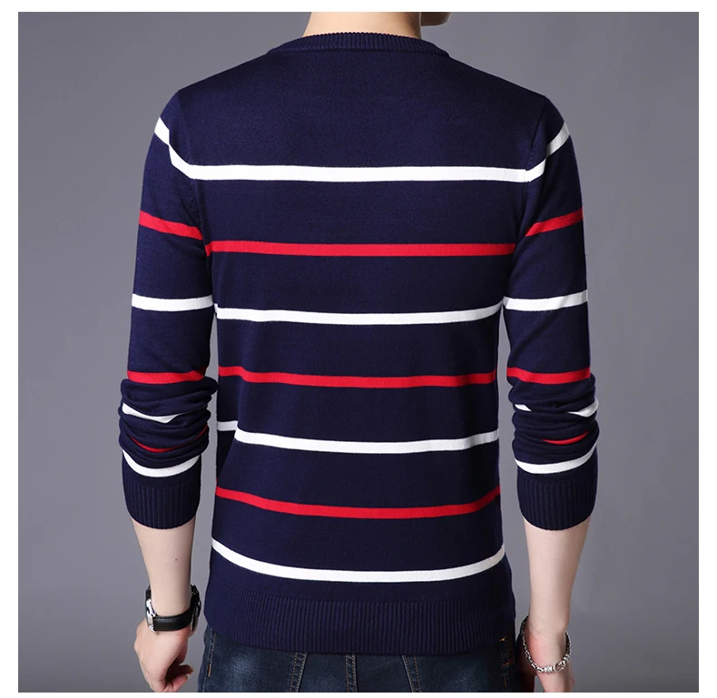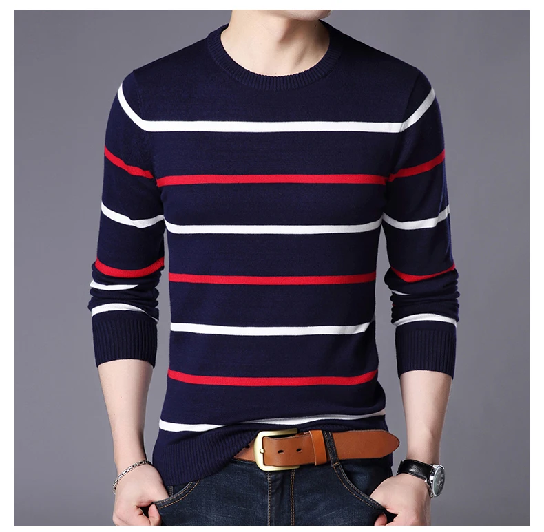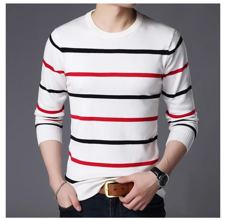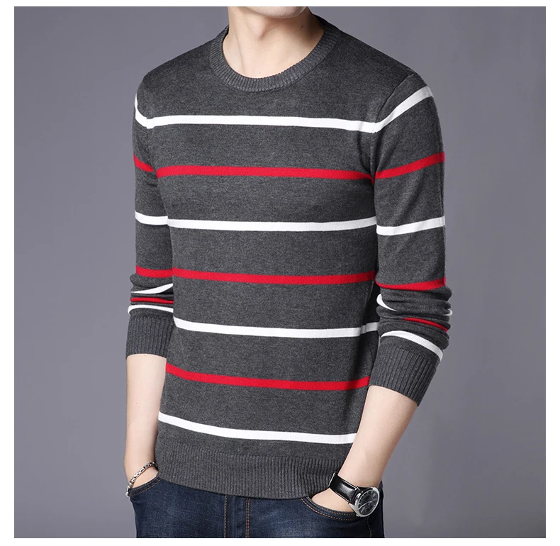 Мужской трикотажный свитер в полоску, с круглым вырезом, 22 цвета
