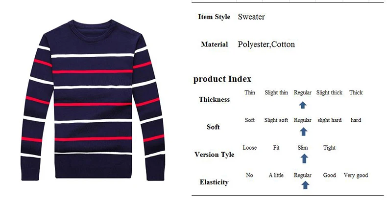 Мужской Хлопковый трикотажный свитер в полоску, с круглым вырезом
