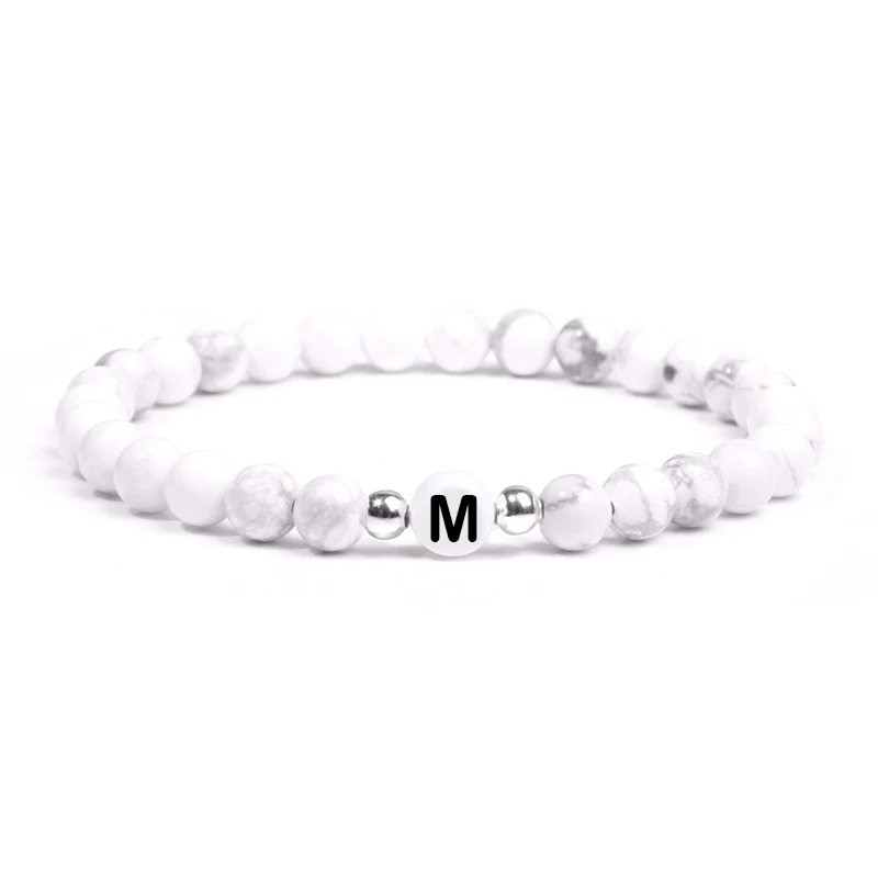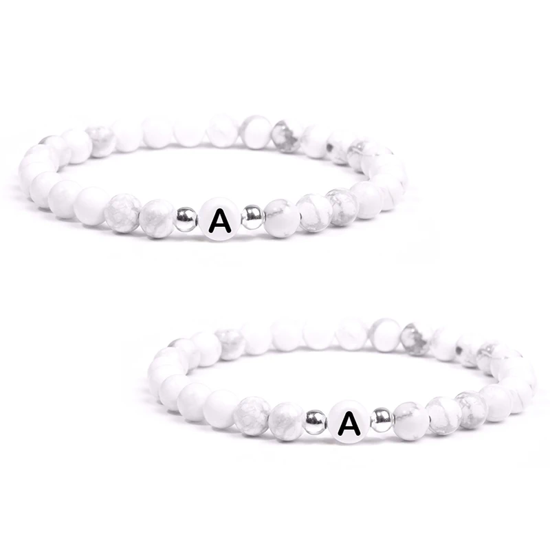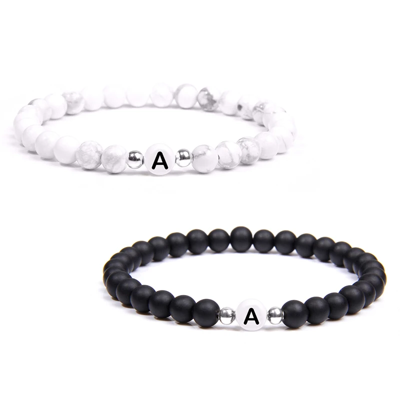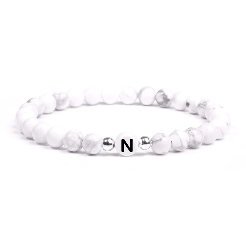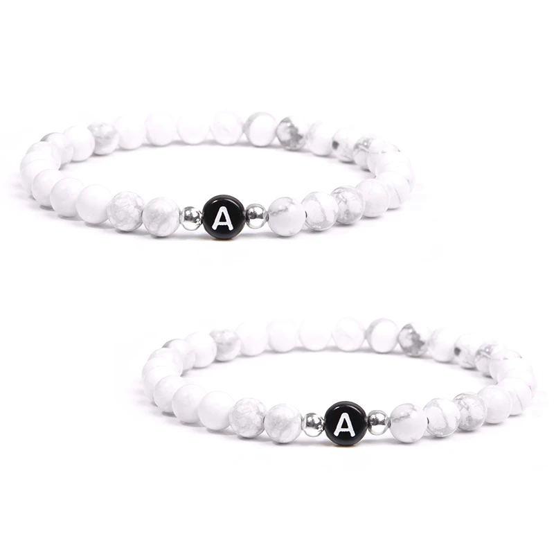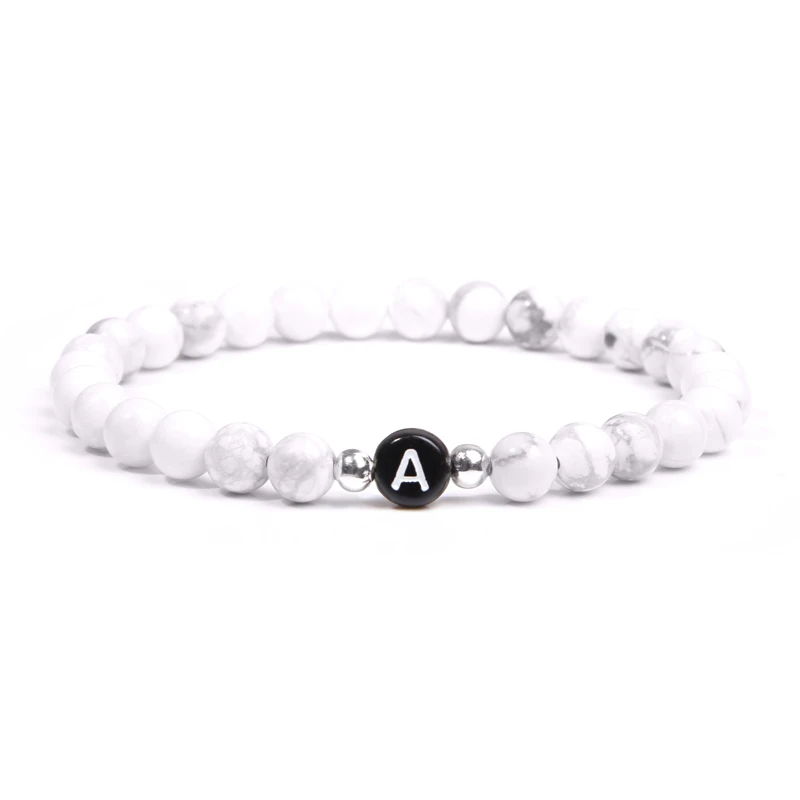 Натуральная бирюза, буквы, камень, бусина, имя, браслет для женщин, мужчин, пары, любовь, дружеская удача, белый, черный, браслеты с буквами, сделай сам