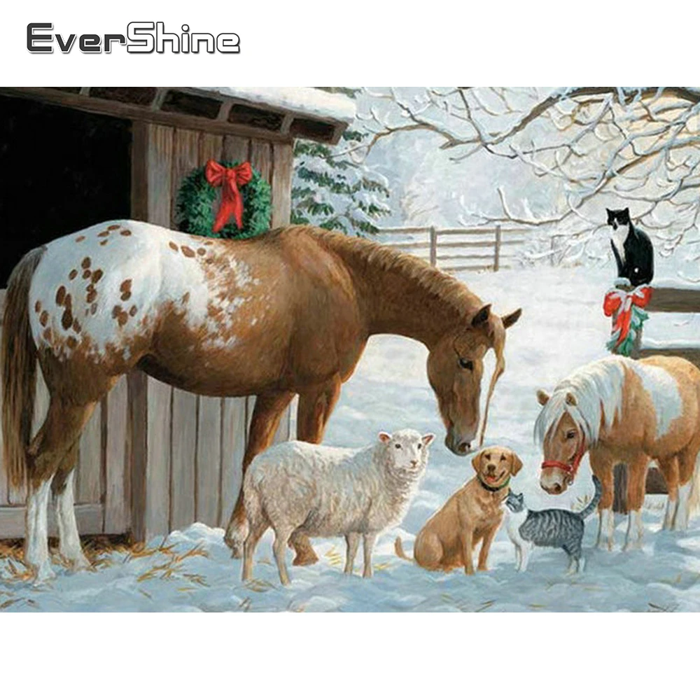 Evershine алмазные мозаичные животные с украшением в виде кристаллов картина Алмазная вышивка полный набор квадратная дрель снежного пейзажа с изображением бриллианта, наклейки
