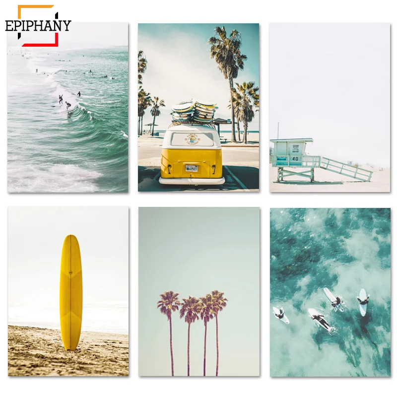 Набор с принтом Калифорнии для серфинга, Картина на холсте, плакаты пляж доска для серфинга, декор в прибрежном стиле, картины для гостиной