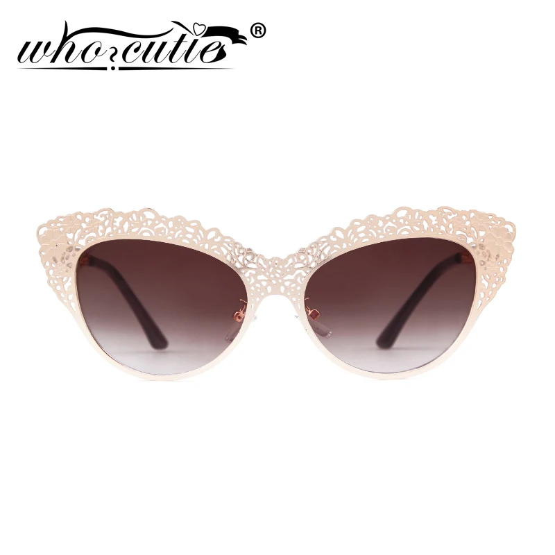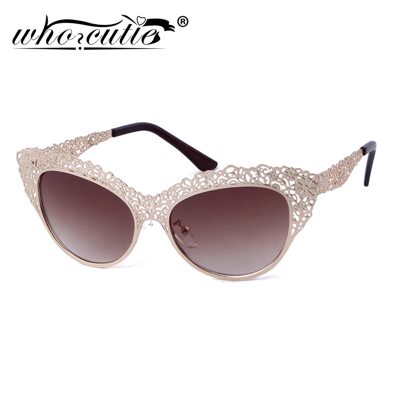 Женские солнцезащитные очки кошачий глаз в стиле барокко с цветком и Полой Металлической оправой, Винтажные Солнцезащитные очки кошачий глаз в стиле ретро, модель S086, 2019