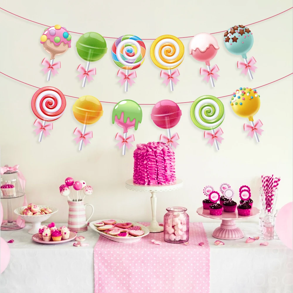 Детский душ сладкий леденец сувениры для вечеринки ко дню рождения Дети сахар конфеты украшения для вечеринок Висячие баннеры вечерние принадлежности