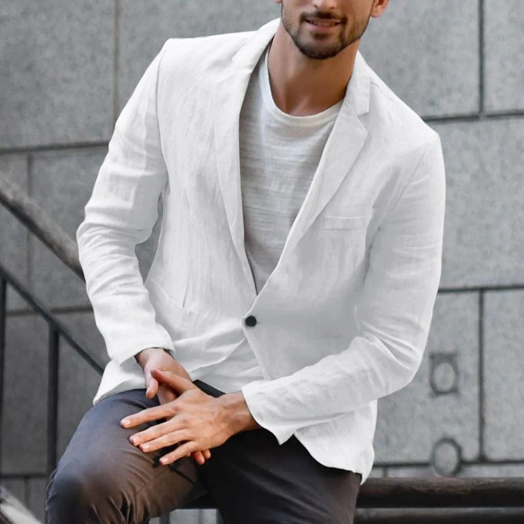 Мужской приталенный льняной пиджак с карманами, однотонный пиджак с длинными рукавами, верхняя одежда