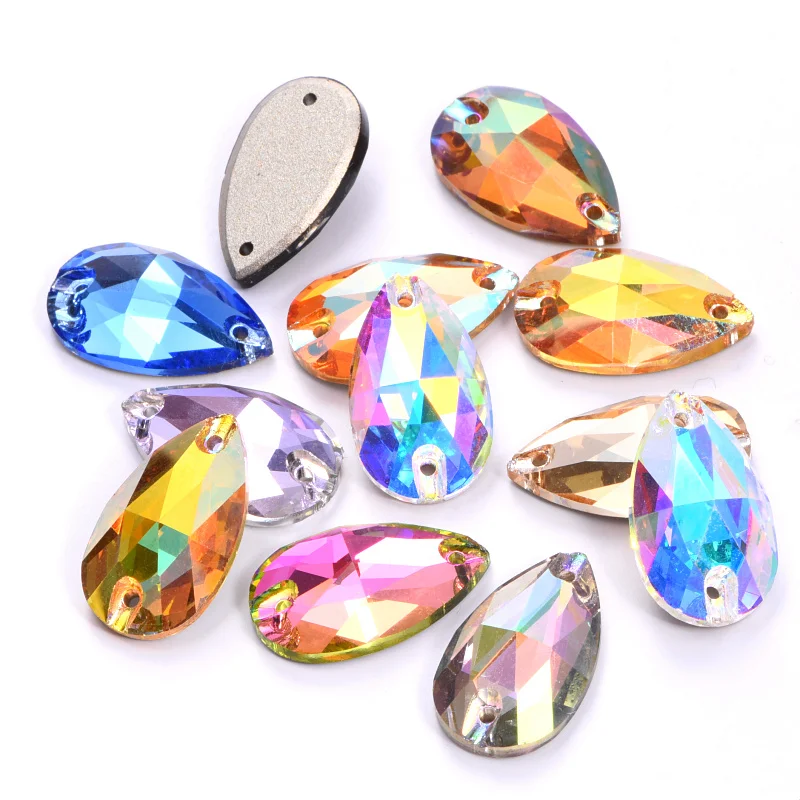 Каплевидный Красочный Кристалл пришивать Стразы стеклянные капли ши...