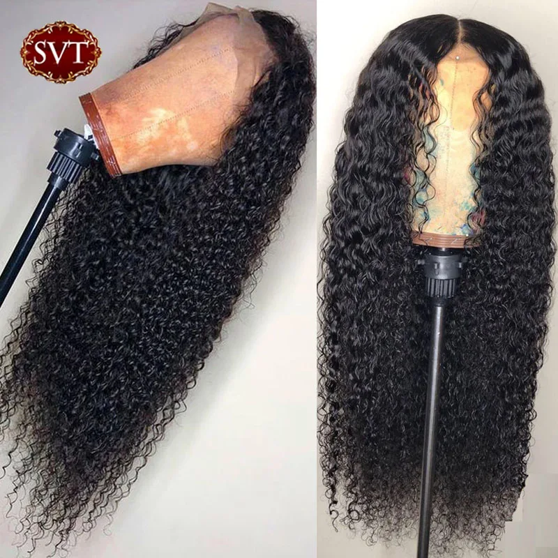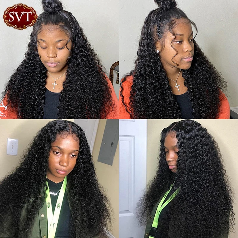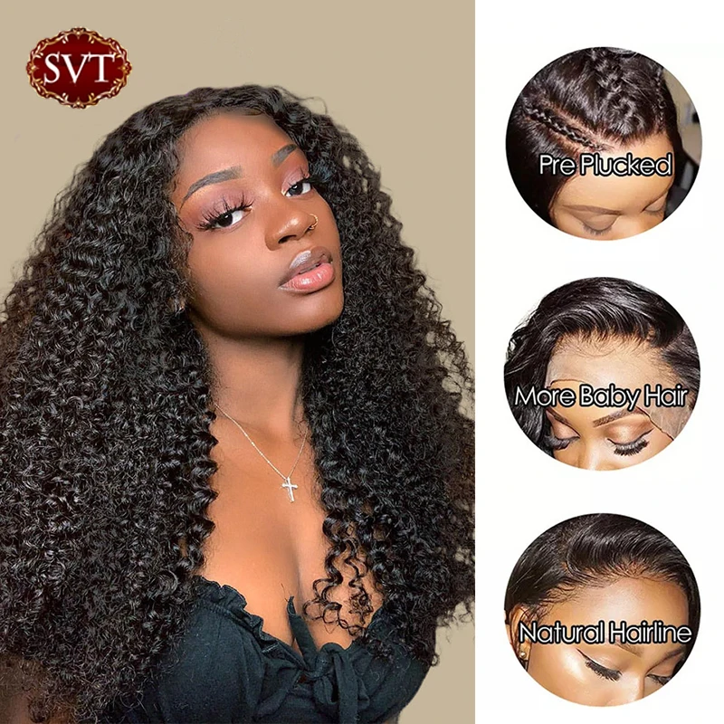 Парики из натуральных кудрявых волос SVT, предварительно выщипанные, без клея, бразильские, 13X4, для чернокожих женщин