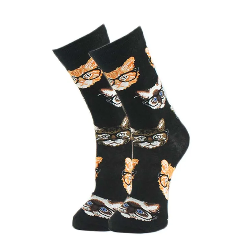 Носки мужские из чесаного хлопка, качественная Повседневная Уличная одежда, смешные цветные милые носки с изображением животных, еды, в стиле хип-хоп