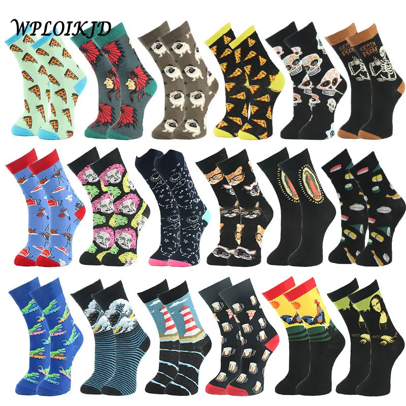 Носки WPLOIKJD мужские из чесаного хлопка, жаккардовые, в стиле хип...