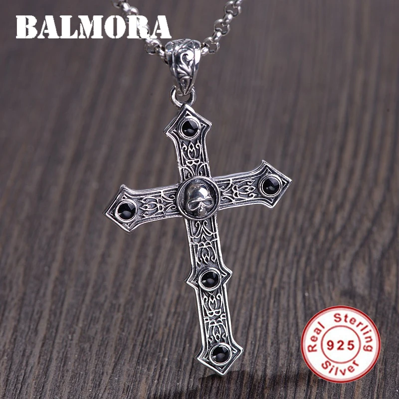 BALMORA 925 серебро Подвеска Крест из черепов для мужчин тайское модное серебро Ретро христианские ювелирные изделия аксессуары без цепи