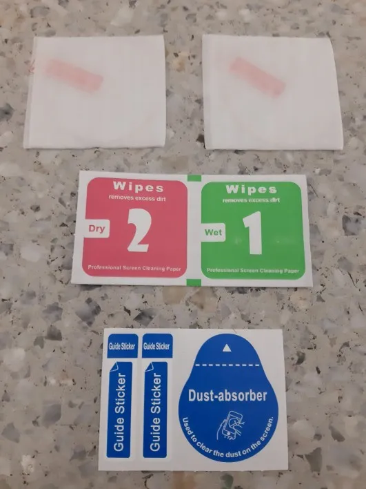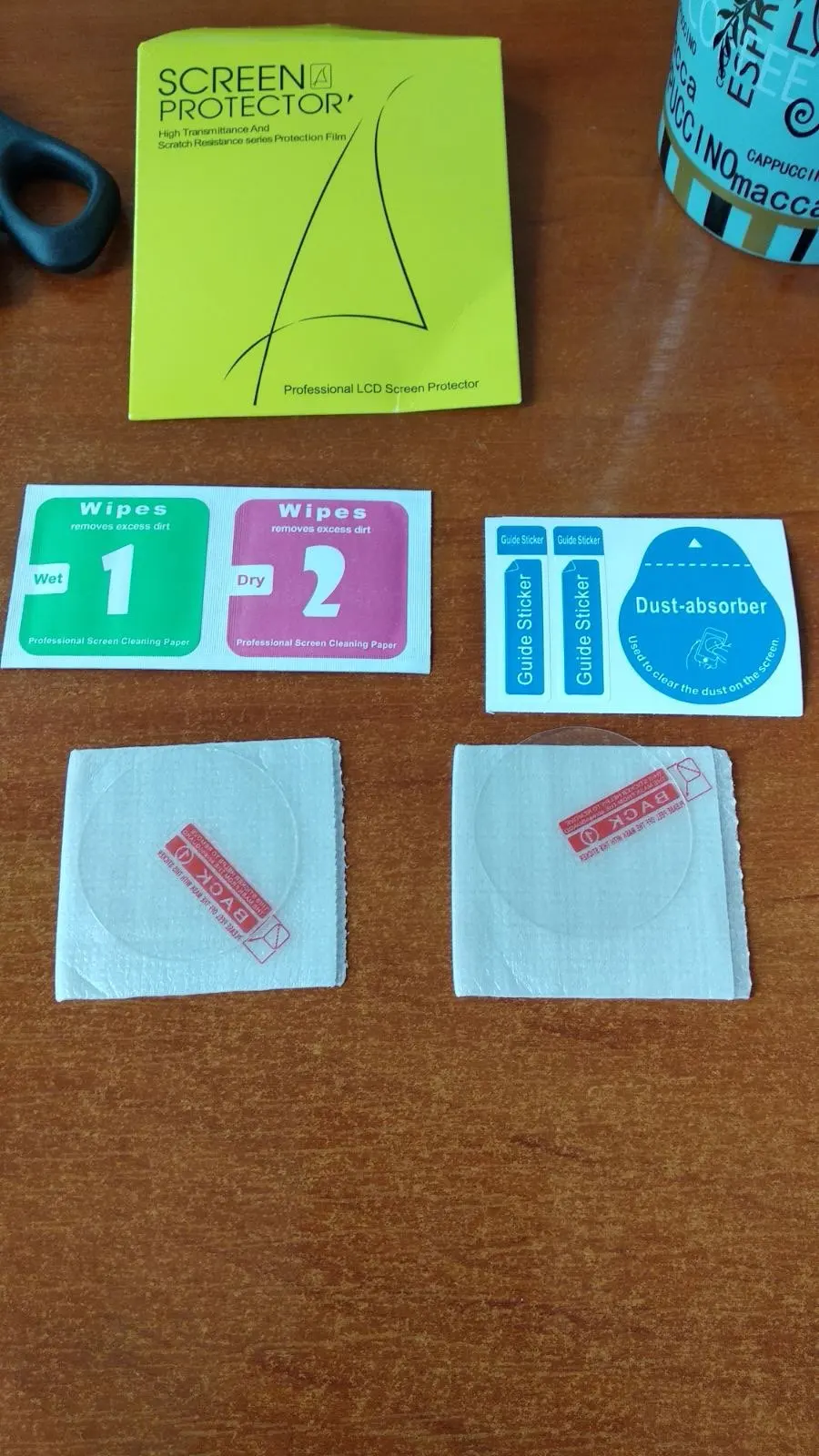 Он прибыл очень быстро, даже перед объявлением. Хорошее качество и индивидуально завернутый. Я пропускаю бумагу, чтобы очистить экран часов, прежде чем надеть защитную пленку. Три кристалла поставляются и только один чистящий набор