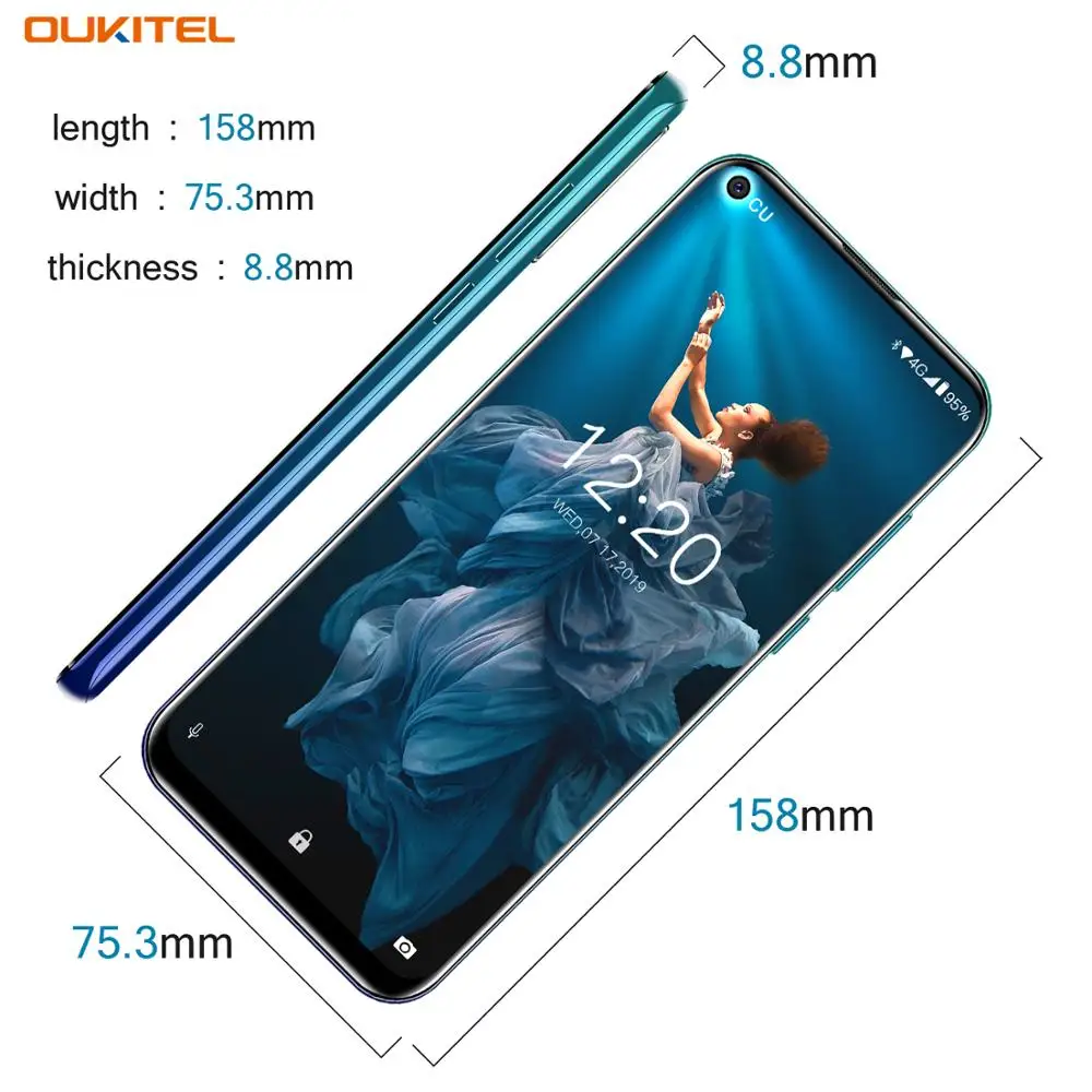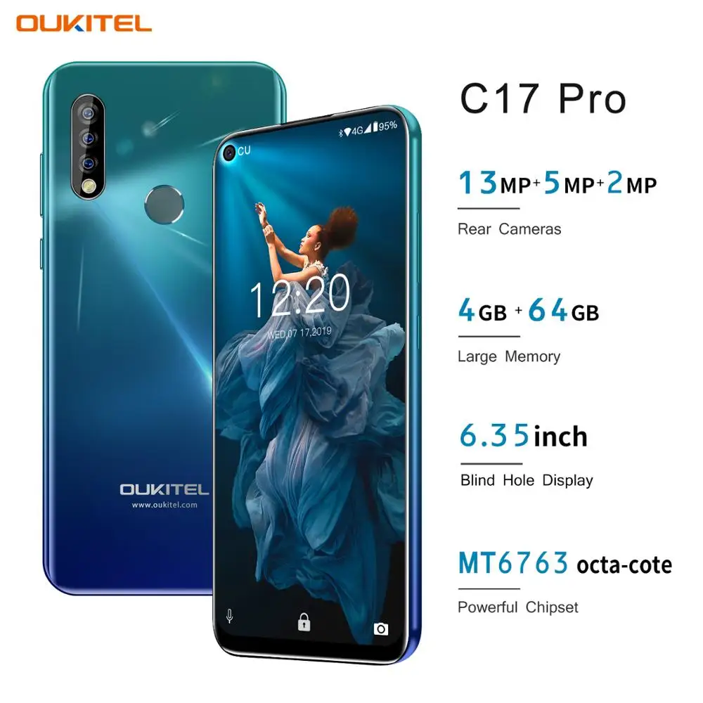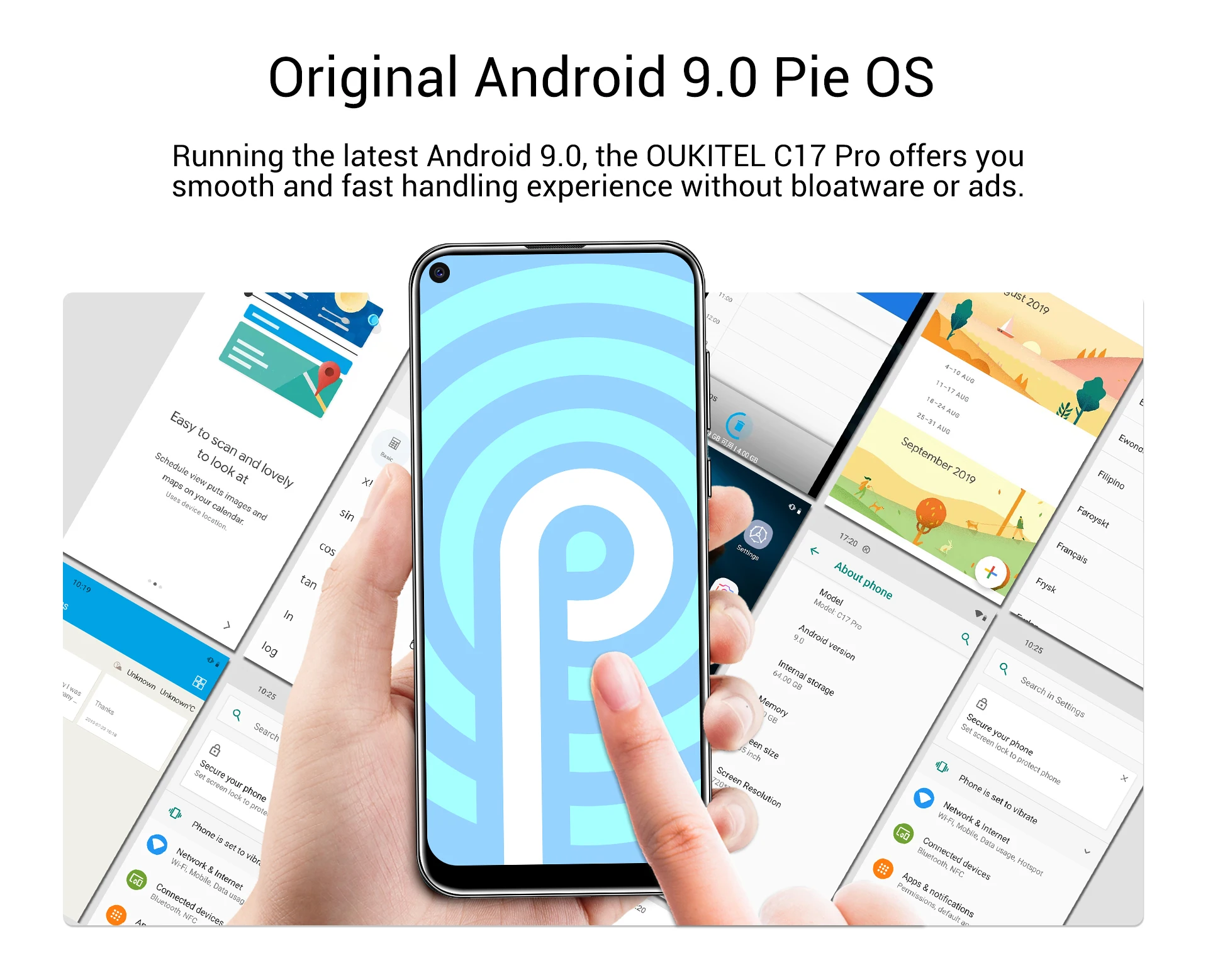 OUKITEL C17 Pro Dual 4G Android 9,0 смартфон с распознаванием отпечатков пальцев лица 6,35 дюймов 4 Гб 64 Гб 19:9 мобильный телефон Восьмиядерный 3900 мАч