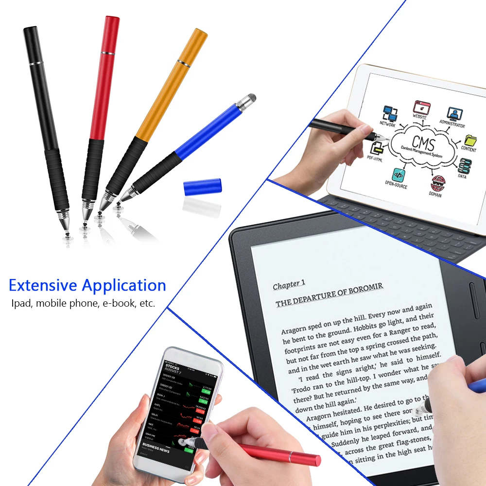 Стилус брал для работы с промышленным экраном, как запасной, что на сенсорном экране, что на сенсорной панеле, точность у него так себе, лежит в руке норм, а вот емкосное перо - хрень полная. Рисовать или писать им даже не пытайтесь.