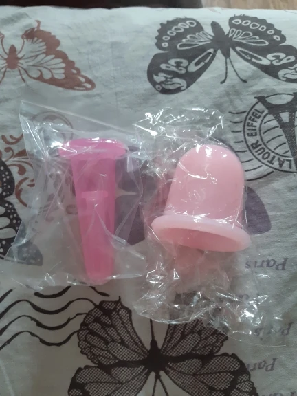 Доставка 30 дней. Всё доехало целым. Баночки из плотного толстого силикона (или резины). Покупалось не себе, так что как они в использовании сказать ничего не можем. Но тянет хорошо. Присасывается отлично. Размеры смотрите на фото. Рекомендуем.