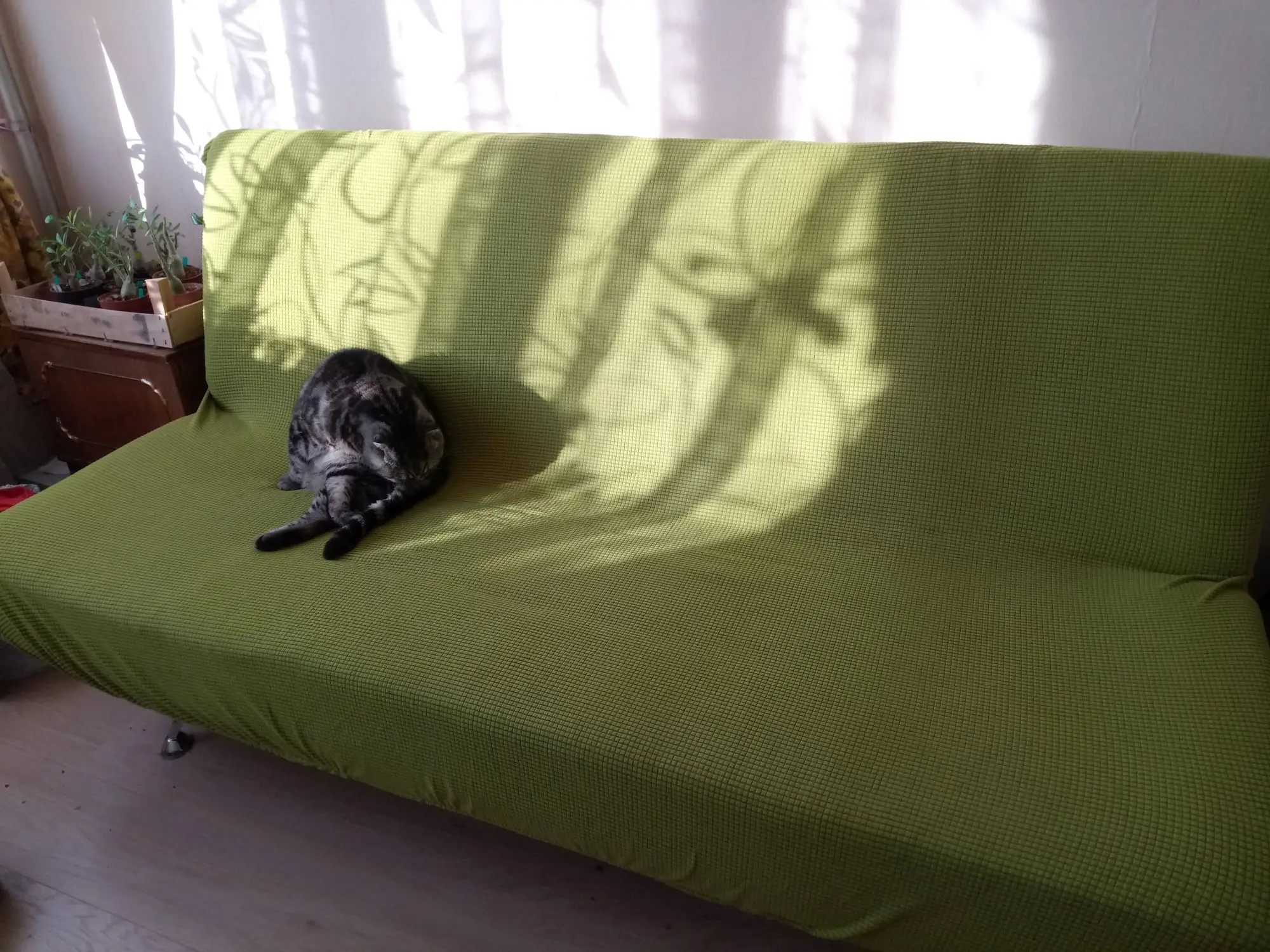Excellent! Very happy with this purchase. The cover is ideal for my sofa - not too large and not too small. Colour is exactly as I was thinking about, specific light green (my monitor shows the same in the photos of the seller - no difference). The cat - the main tester - approved it straight away. Delivery - 5 weeks. Thank you!!!