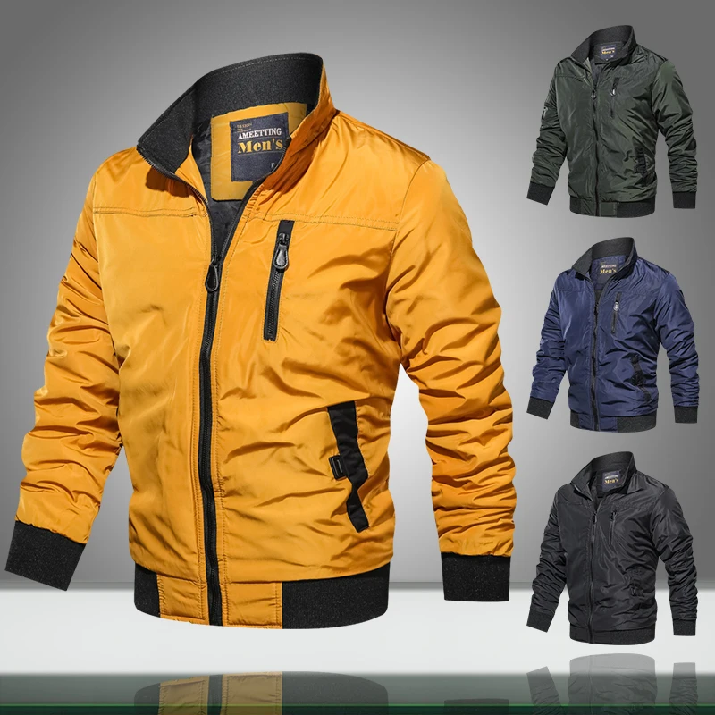 Мужская куртка-бомбер, Повседневная однотонная куртка с воротником-стойкой, свободная тонкая куртка на молнии для улицы, осень 2020