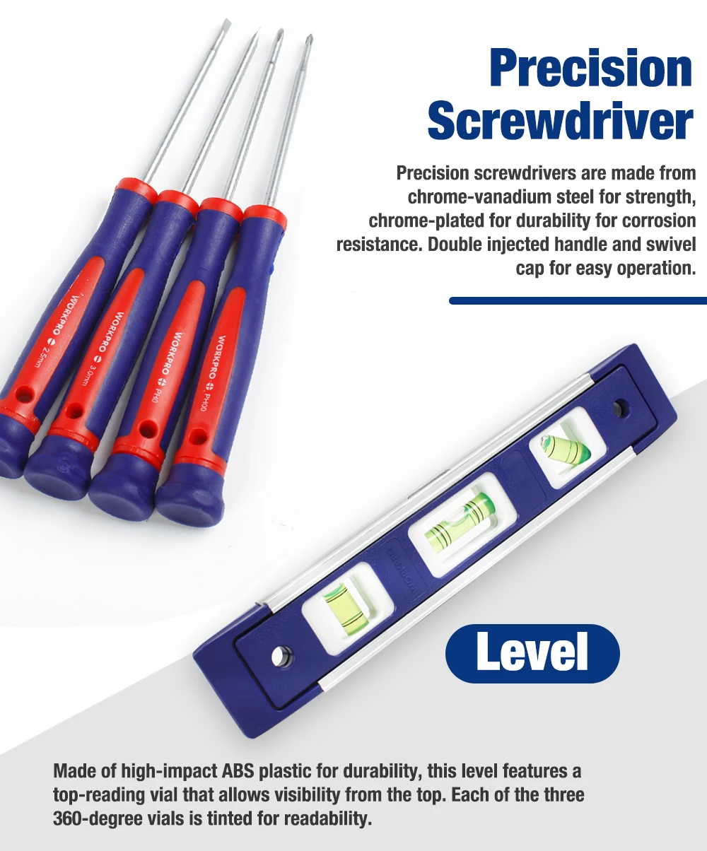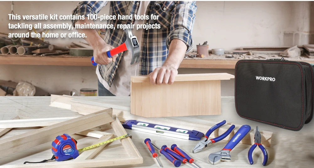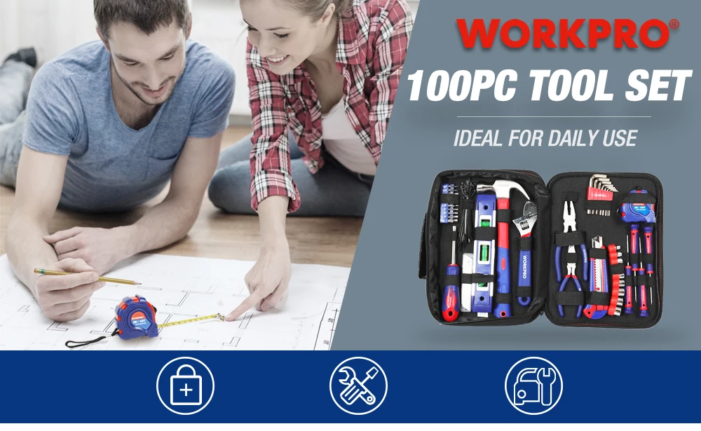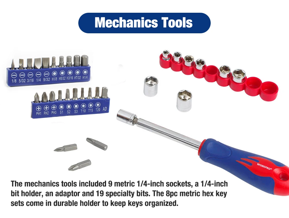 Набор бытовых инструментов WORKPRO 100-408 шт., комплект гаечных ключей с храповым механизмом набор инструментов для дома, набор прецизионных насадок для отверток, шестигранный ключ, молоток