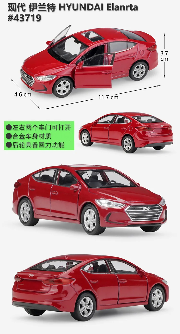 Модель автомобиля hyundai elantra, литой в масштабе 1:36, с отодвижным механизмом, образовательная коллекция для детей