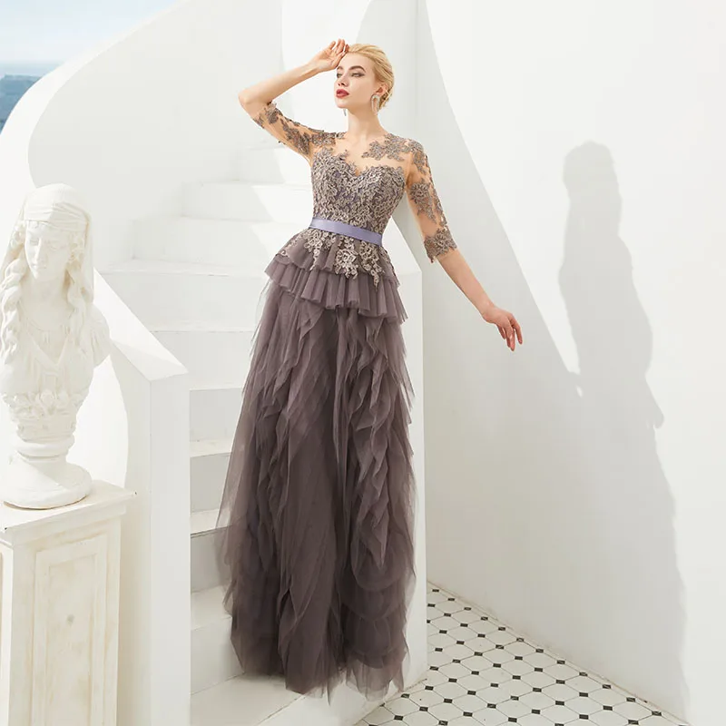 Кружевное платье для матери невесты, с коротким рукавом и аппликацией
